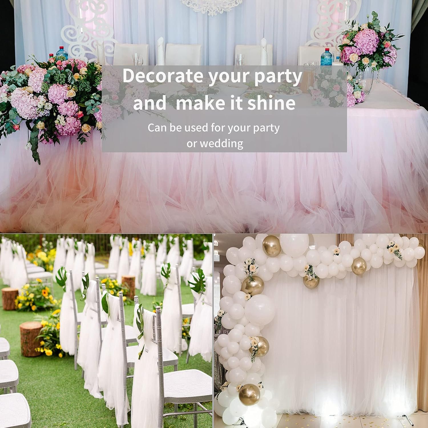 ❤Material: The fabric is made of 100% polyester tulle, which texture is slightly hard, but it is light and easy to shape. The unfolded size is 54 inches wide x 20 yards.
