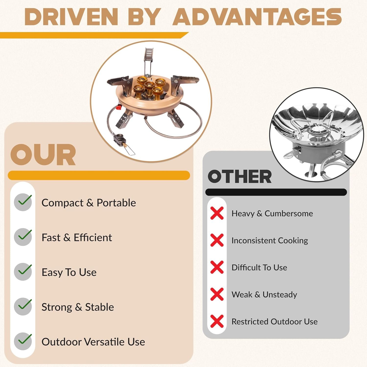 【Durable Construction for Outdoor Use】– Built from premium materials, this rugged stove withstands extreme conditions while remaining lightweight enough for easy transport.