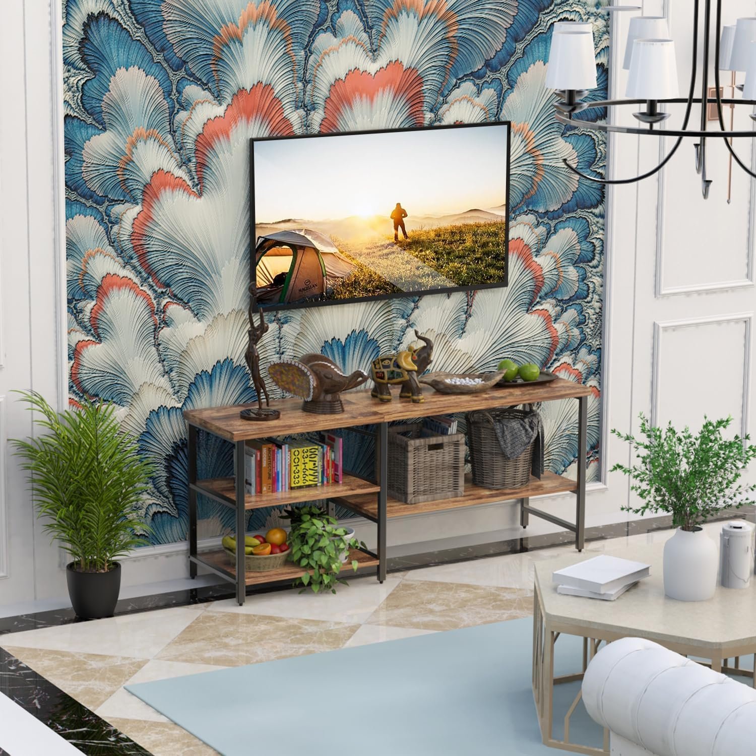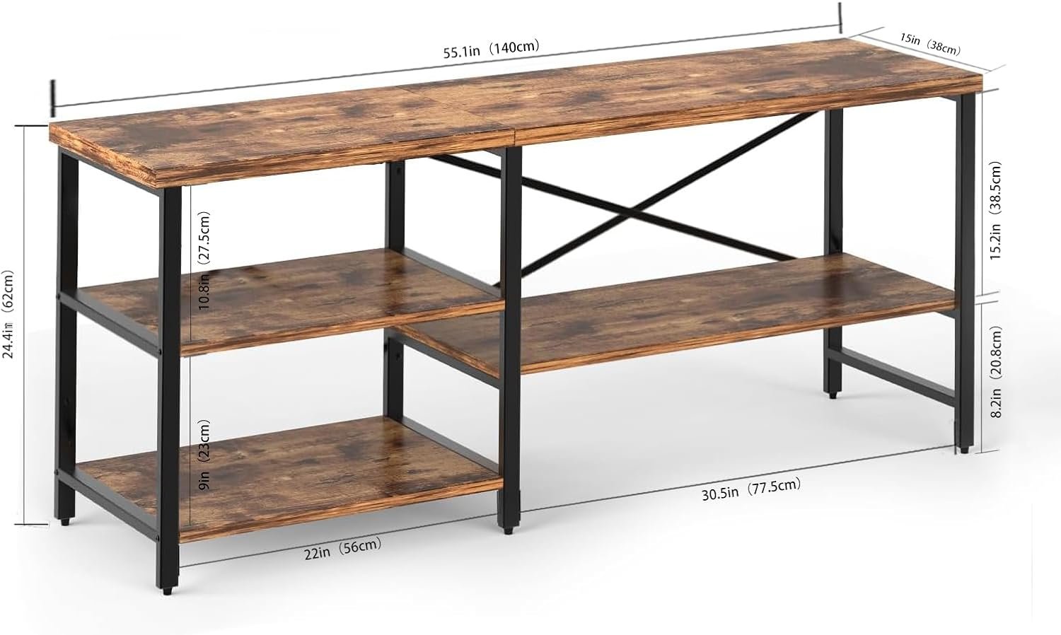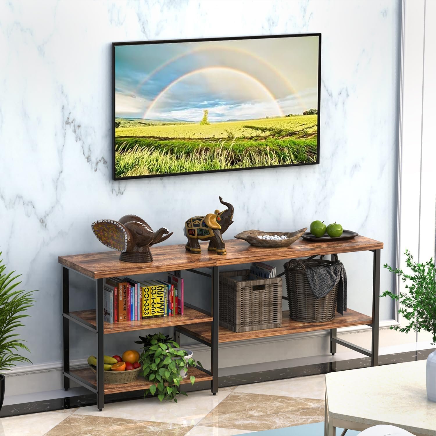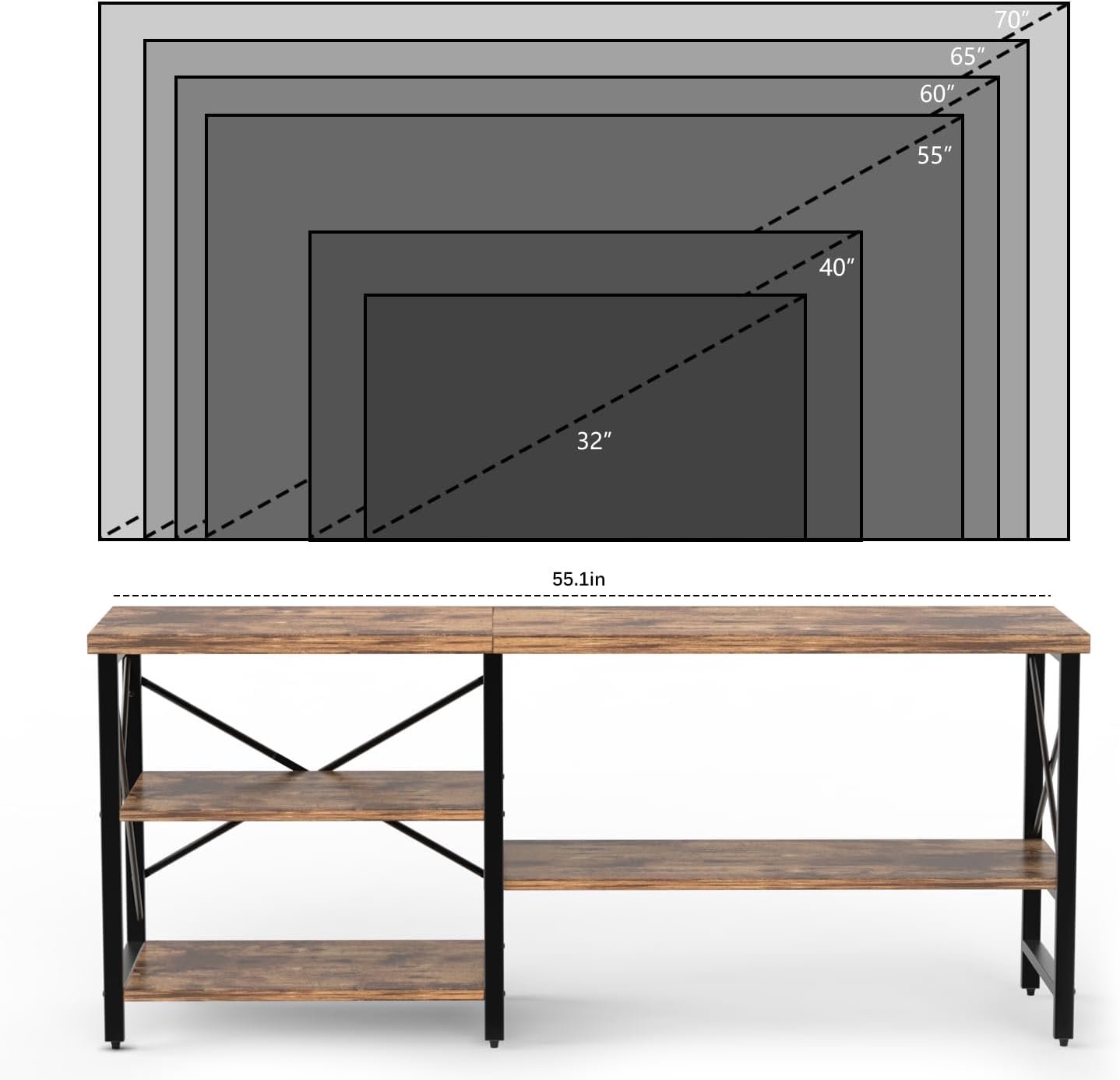 55 Inch TV Stand for TVs up to 70 Inch TV, Modern Entertainment Center with Open Storage Shelves, TV Media Console Table for Living Room, Rustic Brown
