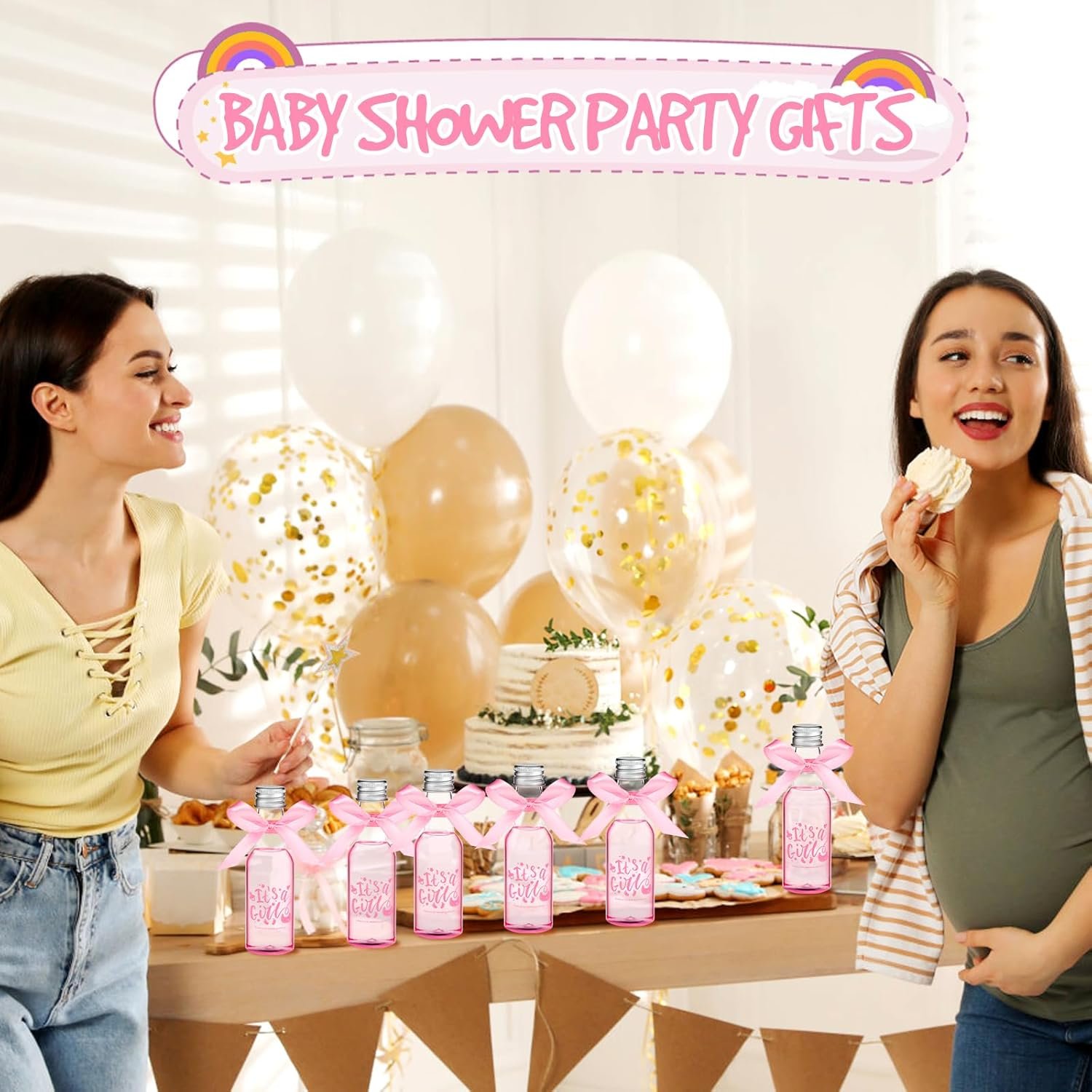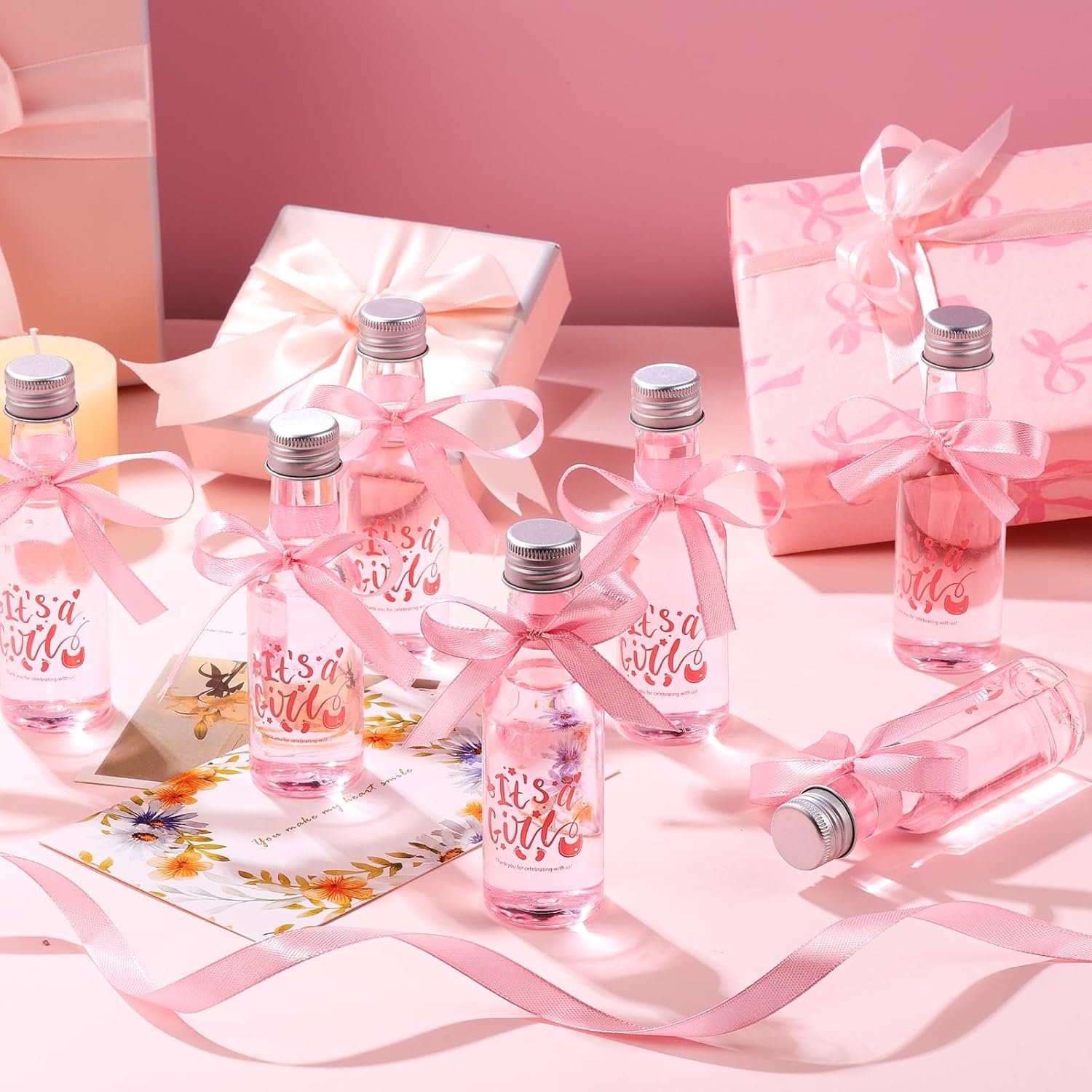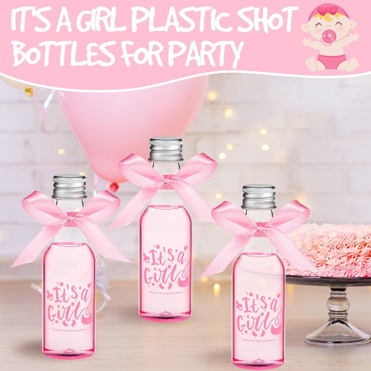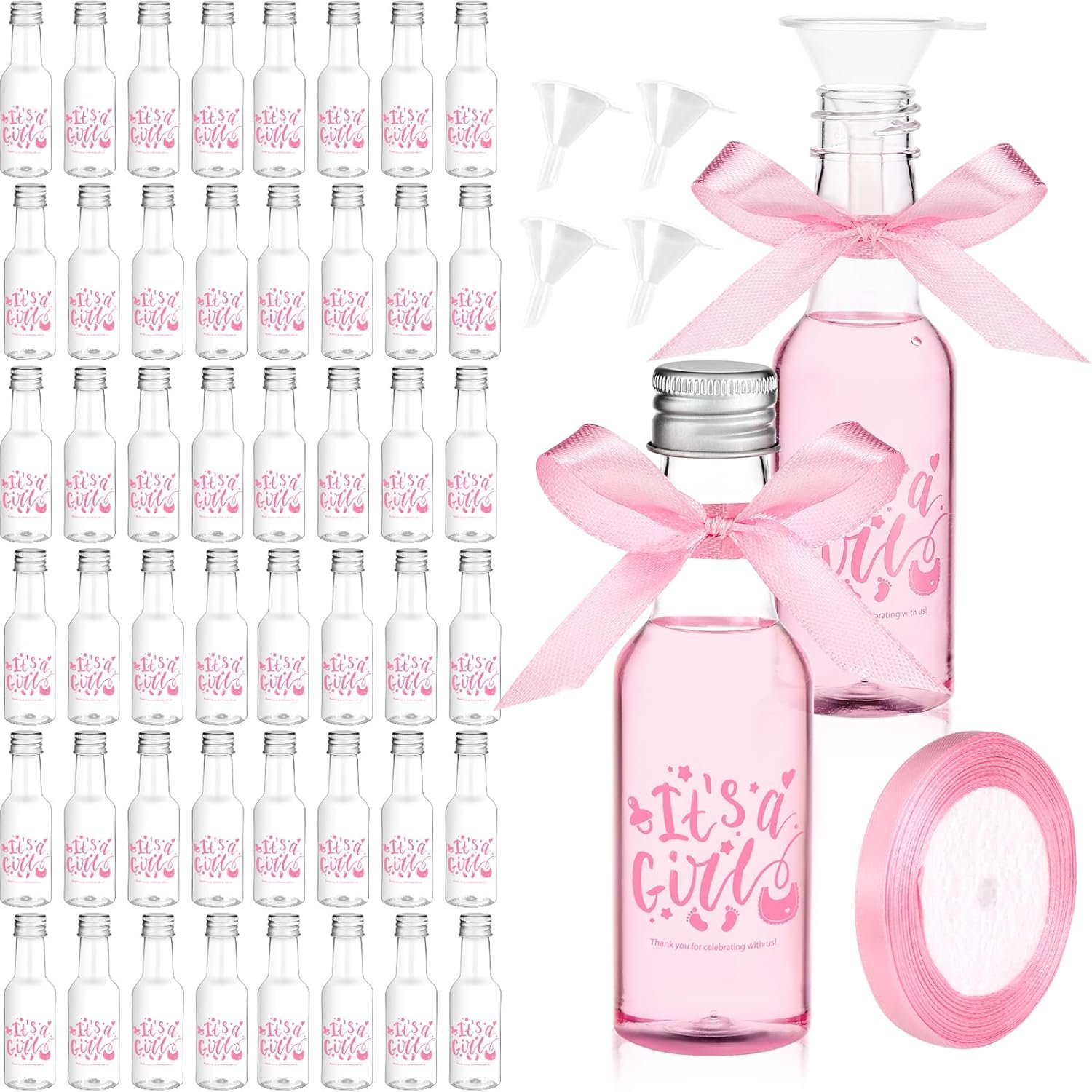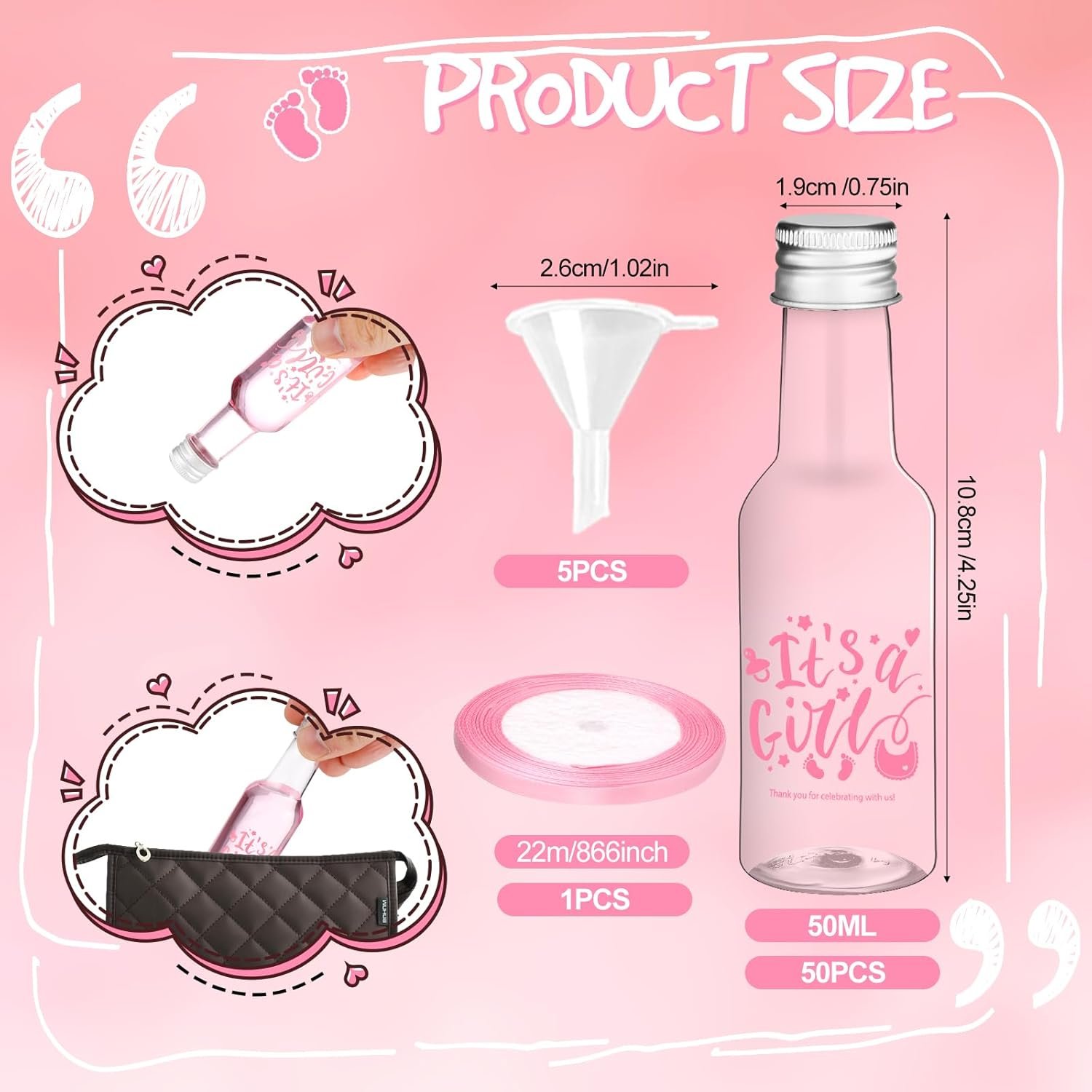 55 Pcs Baby Shower Gifts for Guests Include 50 It’s a Girl Baby Shower Plastic Alcohol Shot Bottles with Caps and 5 Funnel for Wine Juice Gender Reveal Party Favors (Pink)