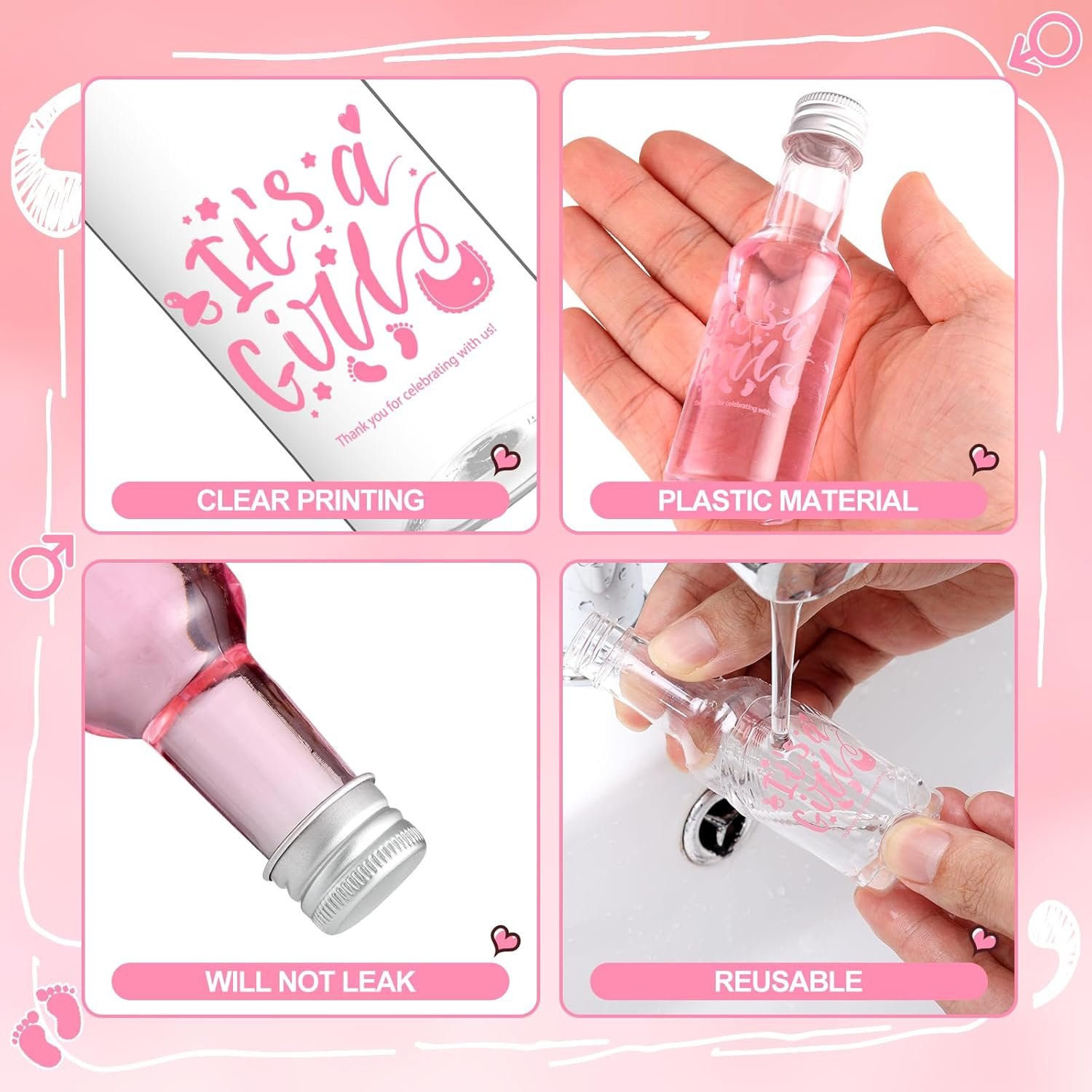 Sufficient Quantity: 50 plastic alcohol shot bottles per set, suitable for guests at baby showers, gender reveal parties, or classroom activities.