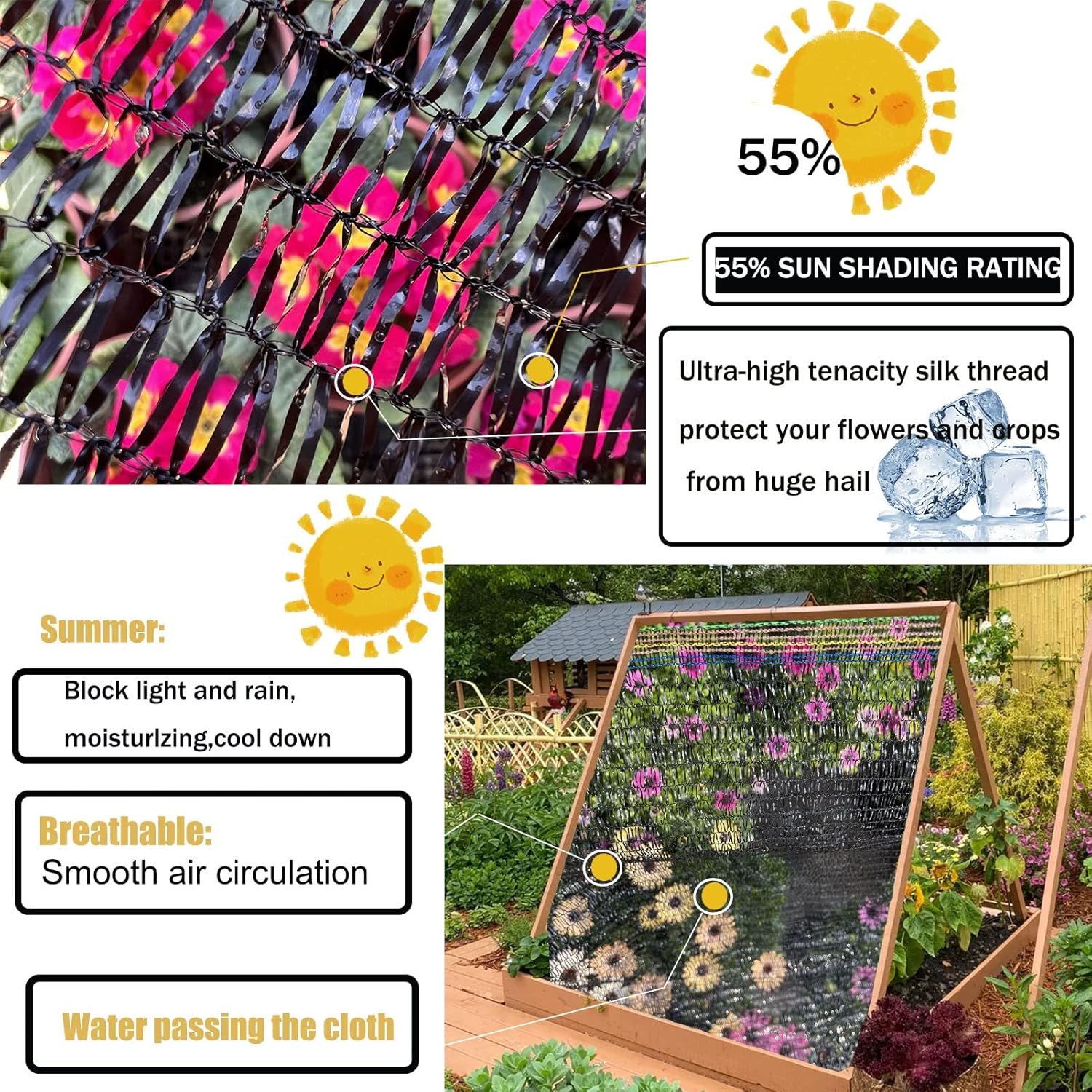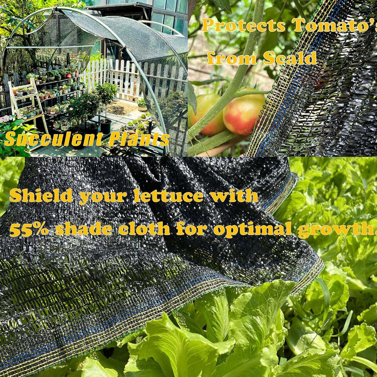 Enjoy the Joy of Harvest :Shade cloth keeps plants and soil cooler. Using shade cloth can extend the production period for cool crops as the summer heat rolls in. It will also stop your cucumbers, tomatoes, peppers, and other warm crops from shutting down production when the full heat of summer arrives