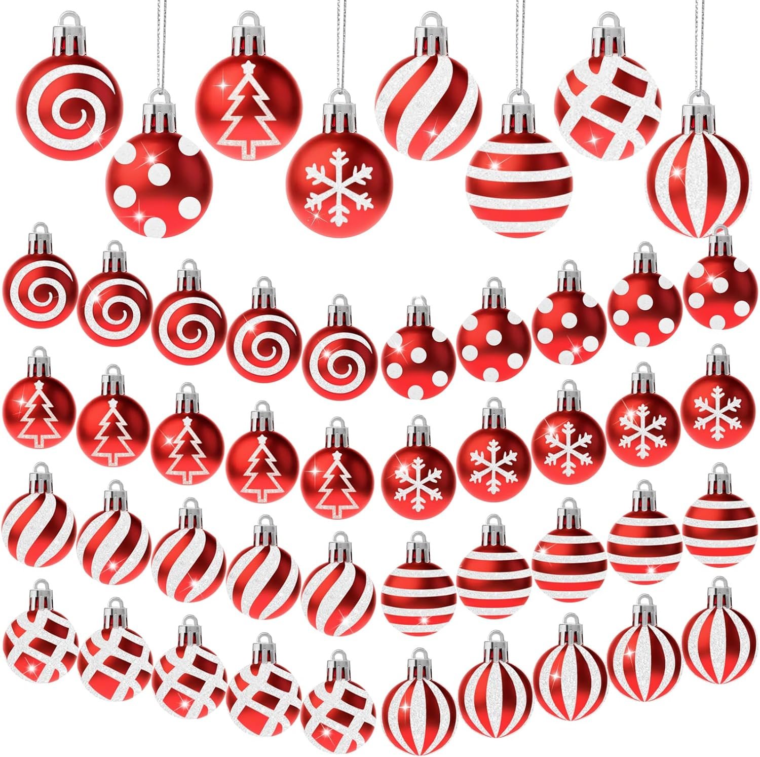 56 Piece Christmas Ball Ornaments – Mini Iridescent Ornaments Set, 1.1in Rustic Christmas Decorations for Xmas Tree
