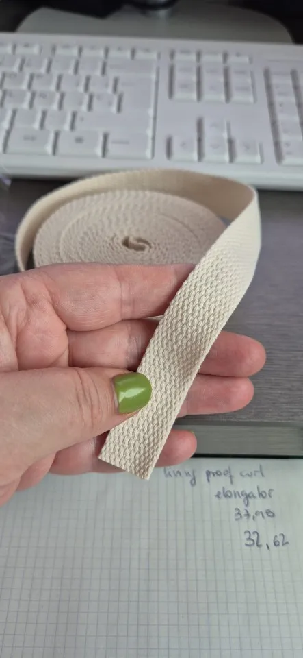 Very good ribbon for bags, cotton feel quite durable. I recommend the seller.