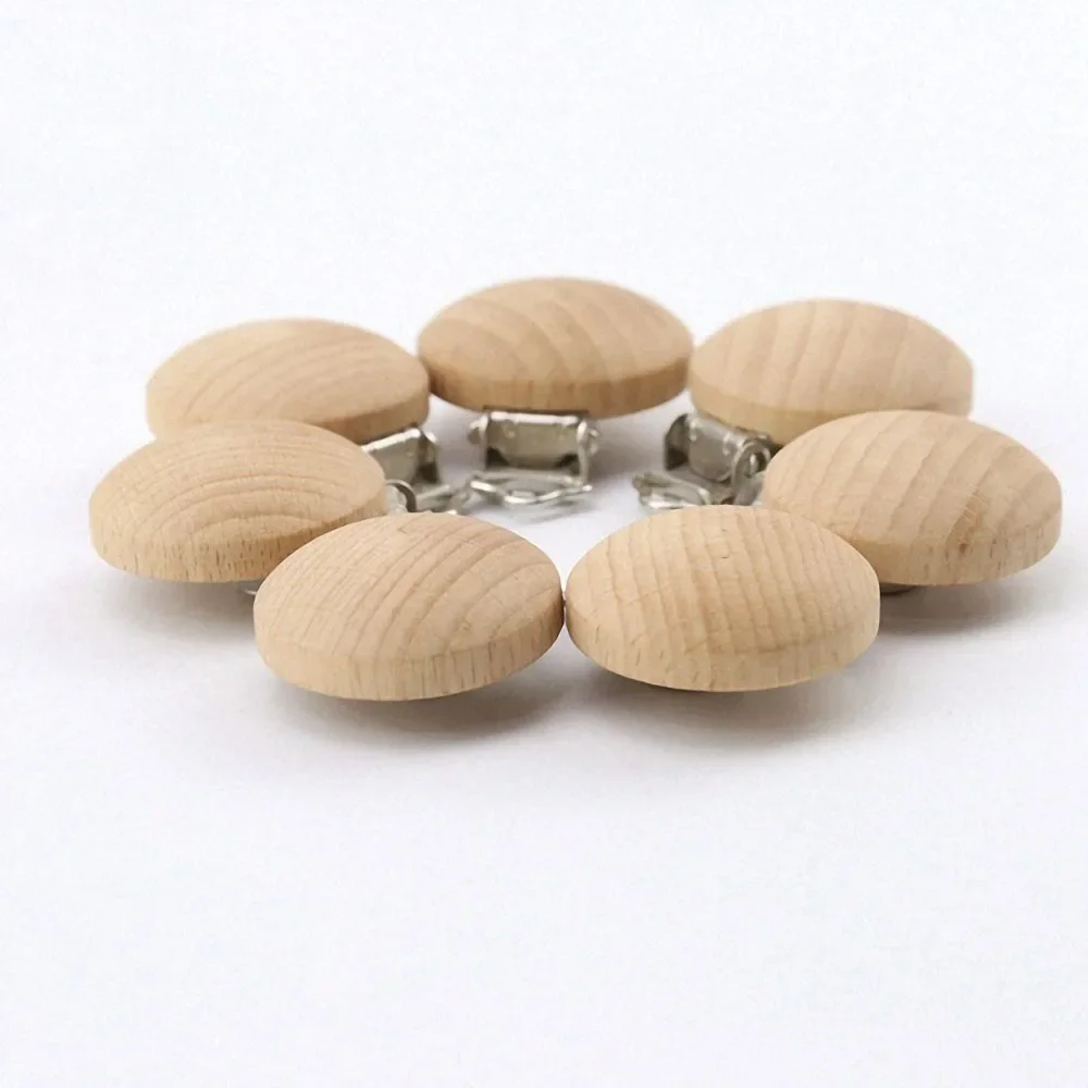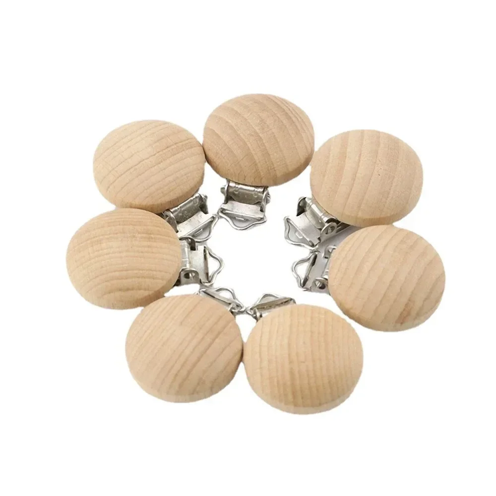 8 reviews for 5pcs Natural Beech Wooden Pacifier Chain Dummy Holder Clips 30mm Round Wood Pacifier Clip Food Grade Baby Teether Chew Toys