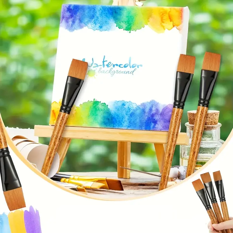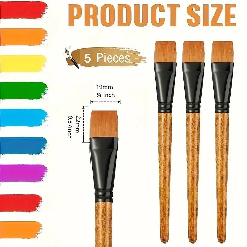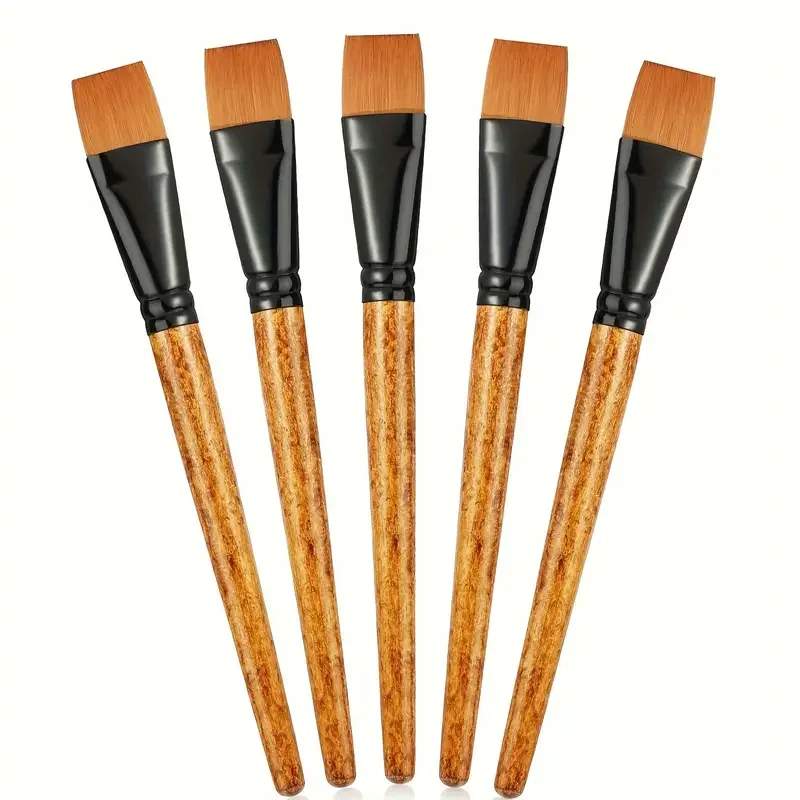 5Pieces Flat Paint Brushes, 3/4 Inch, Watercolor & Acrylic, Synthetic Nylon, Ideal for Painting, Oil, Fine Crafts, Face, Body A