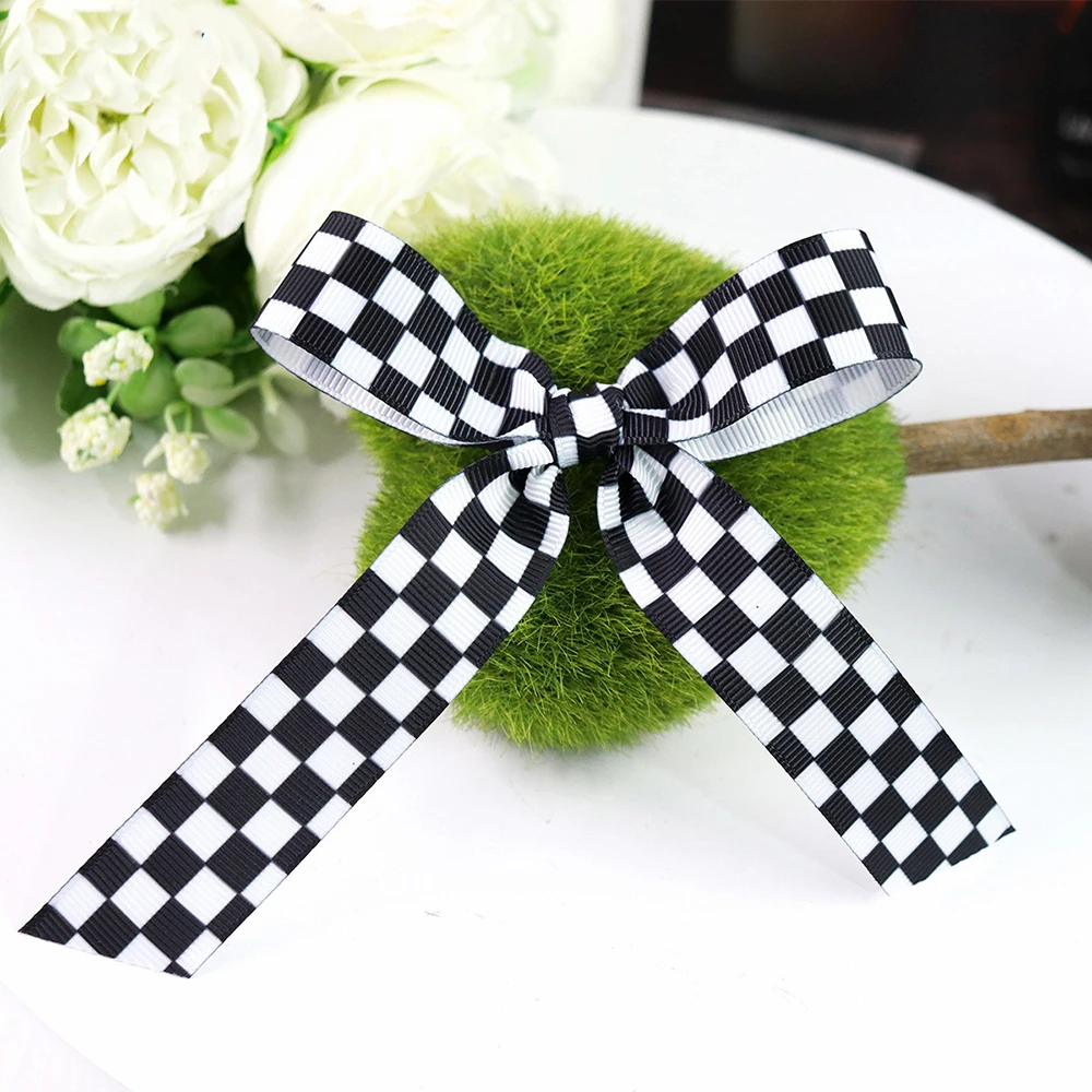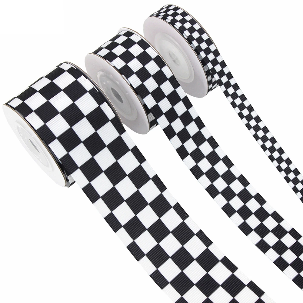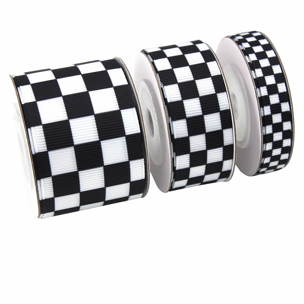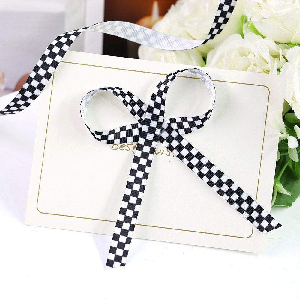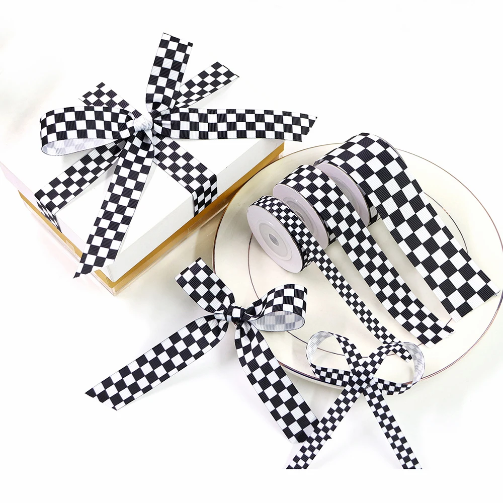 5Yards 10/22/38mm Black White Plaid Ribbon DIY Crafts Wrapping For Wedding Flower Handmade Bow Gift Box Packaging Party Decor