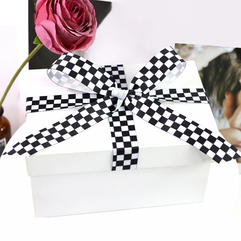 8 reviews for 5Yards 10/22/38mm Black White Plaid Ribbon DIY Crafts Wrapping For Wedding Flower Handmade Bow Gift Box Packaging Party Decor