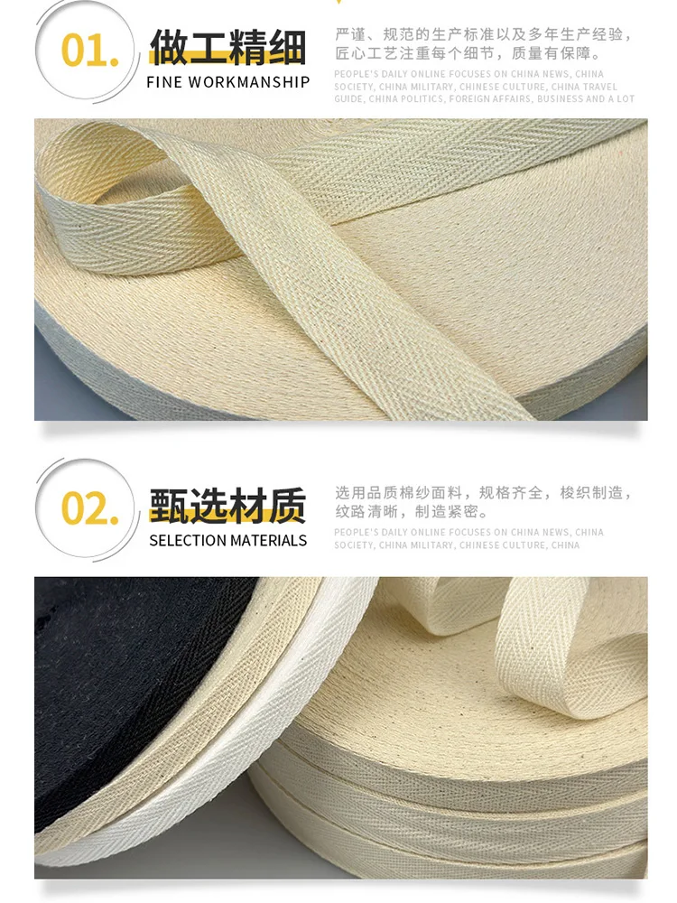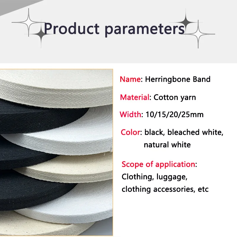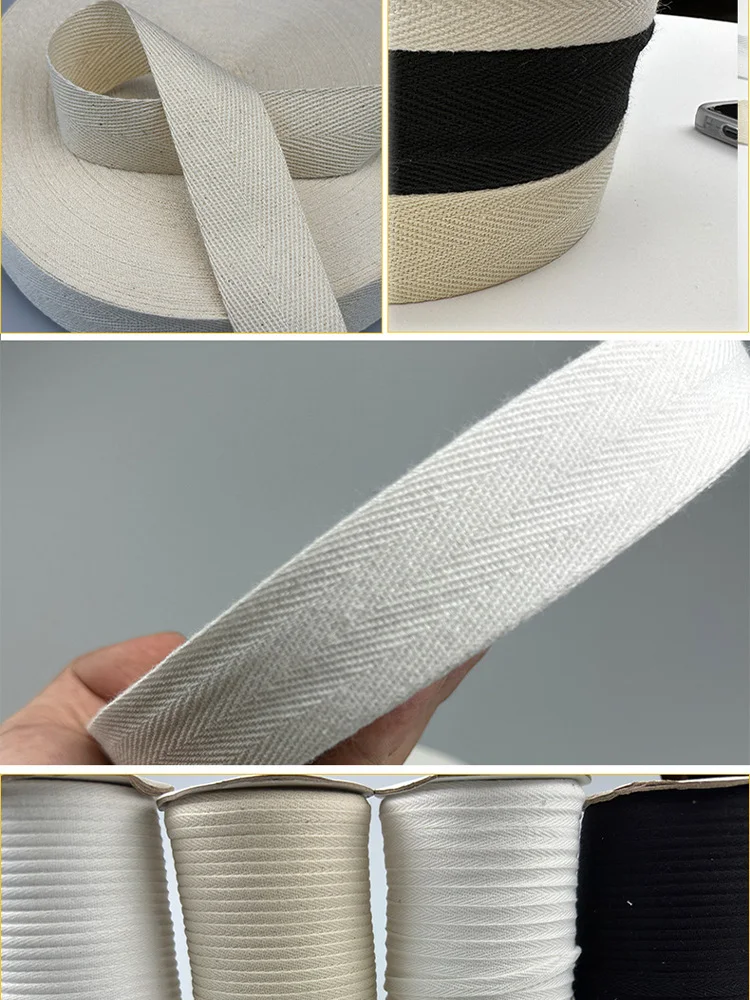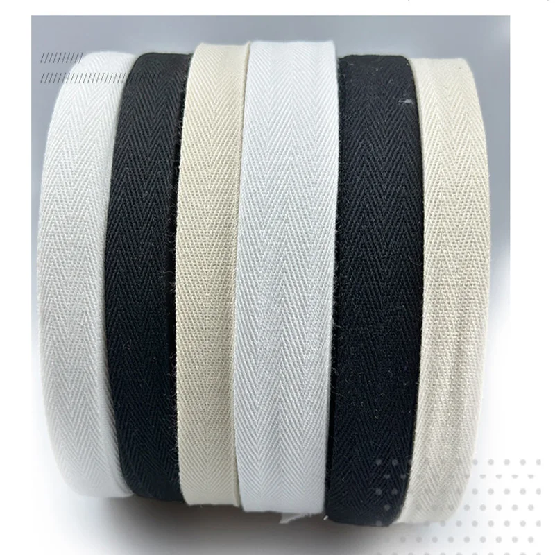 Cotton Woven Tape With Herringbone Pattern Edging Strip Black White Beige Twill Binding Ribbon Webbing Tape Sewing Supplies