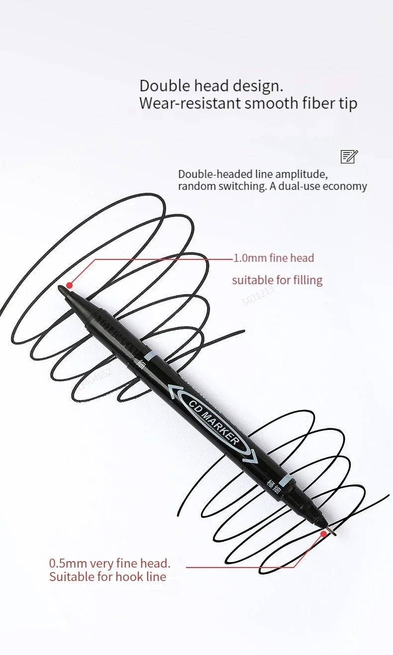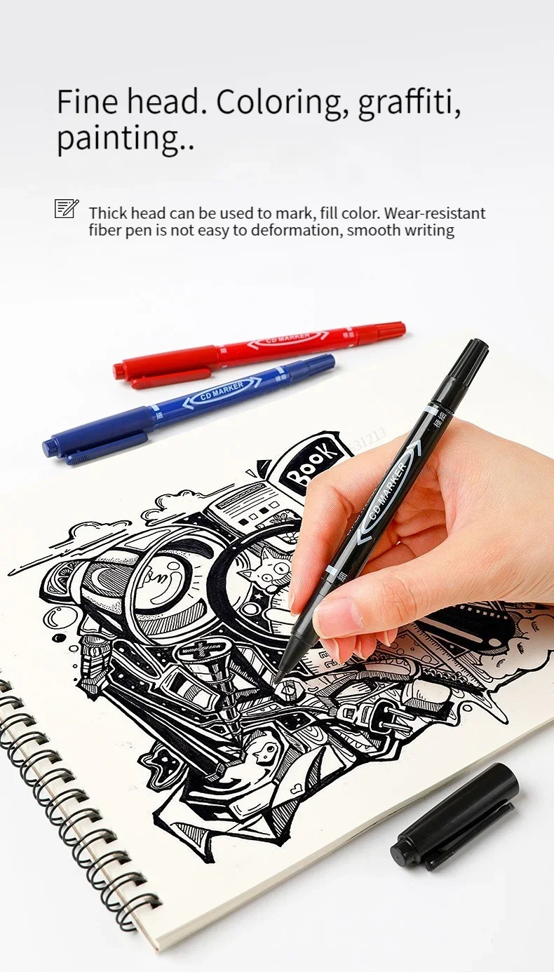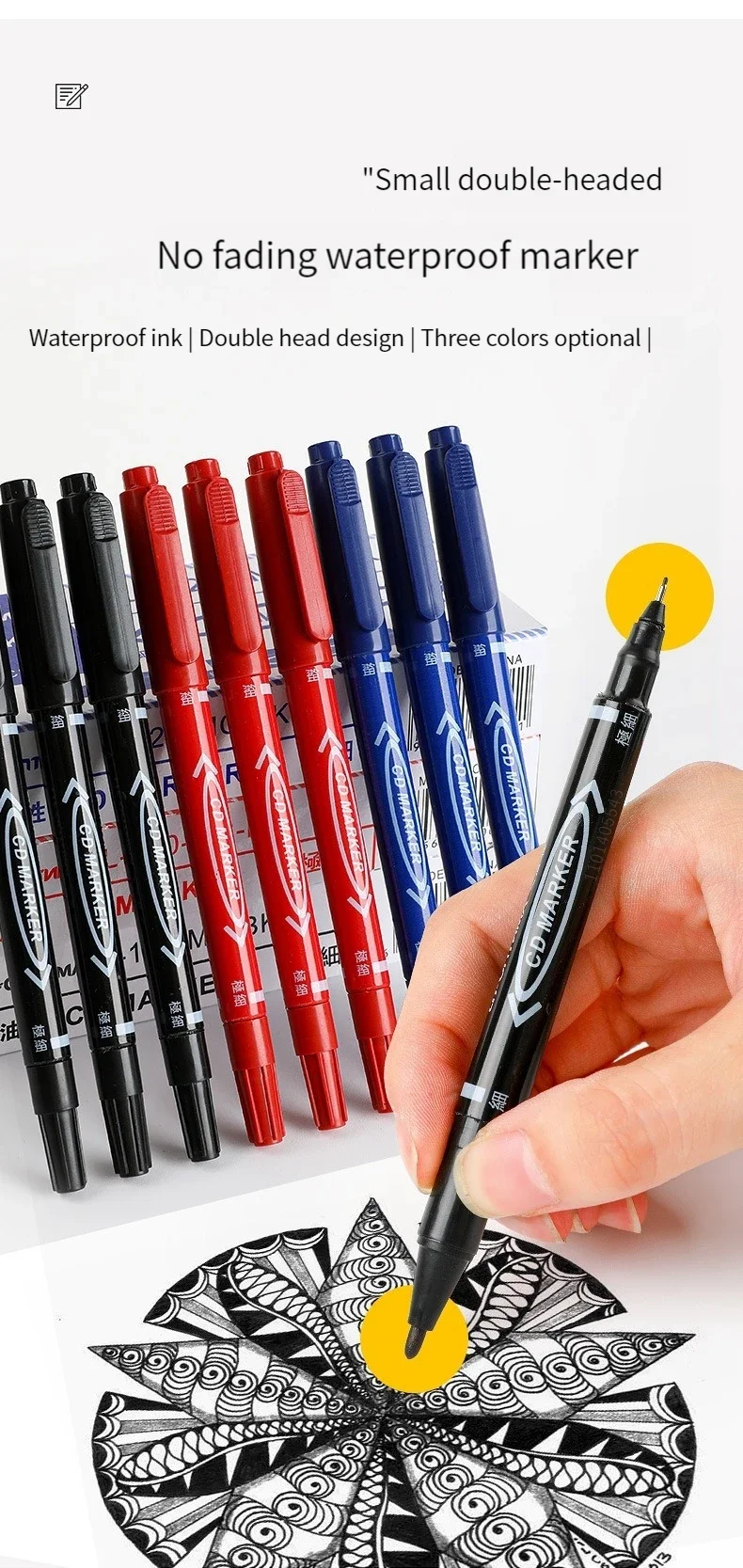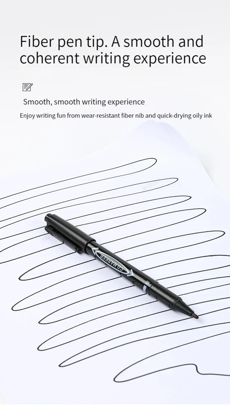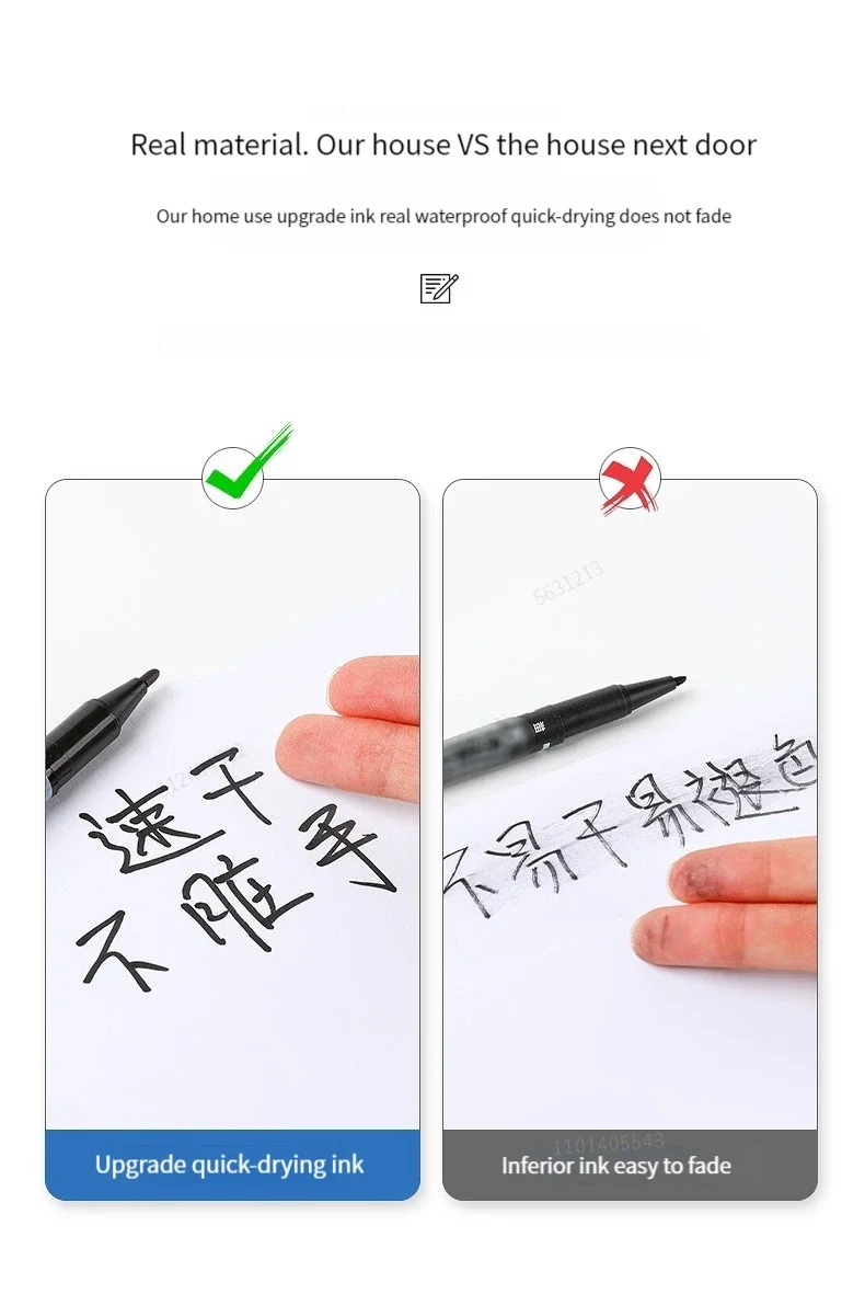 6/12pc Set Waterproof Oily Color Double Tip Permanent Markers Fine Tip Thick Tip Black Ink Drawing Pens Supplies Stationer