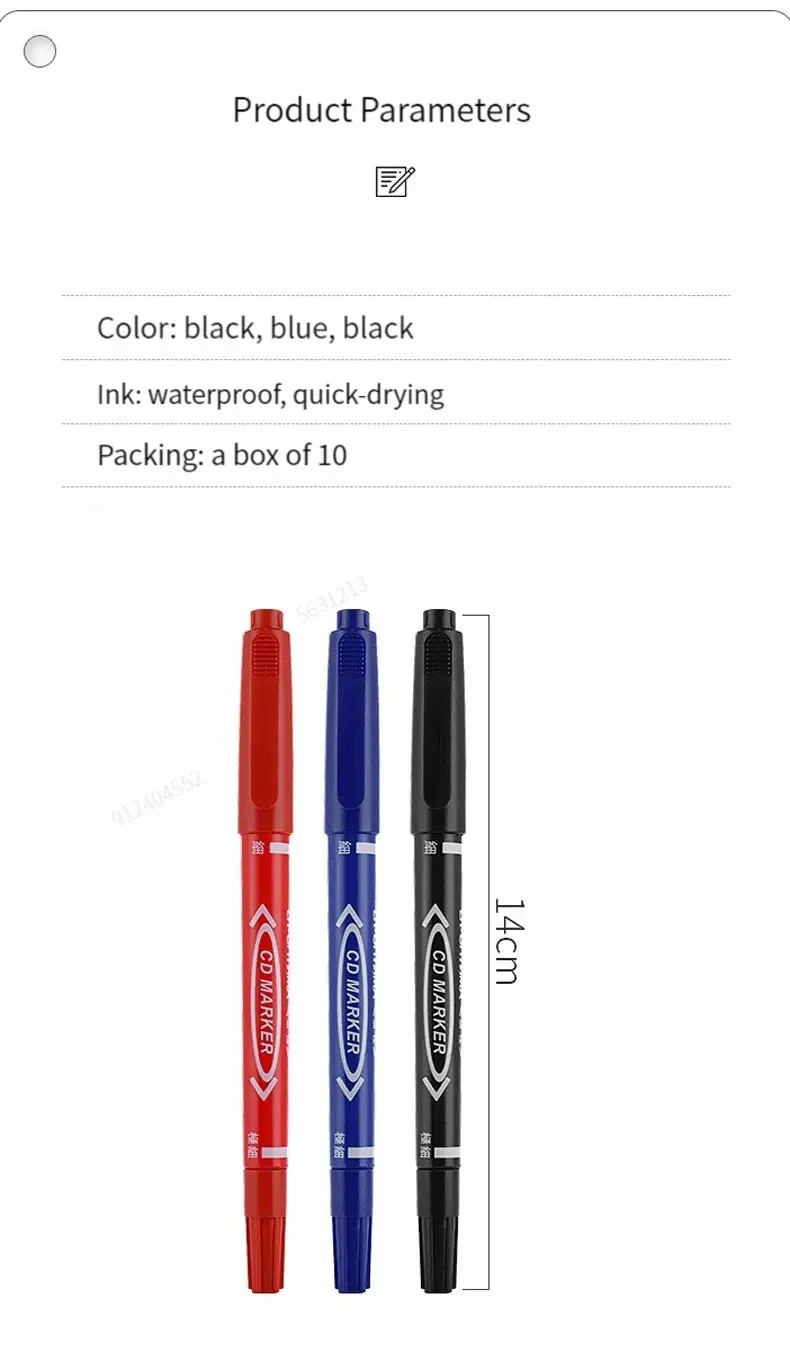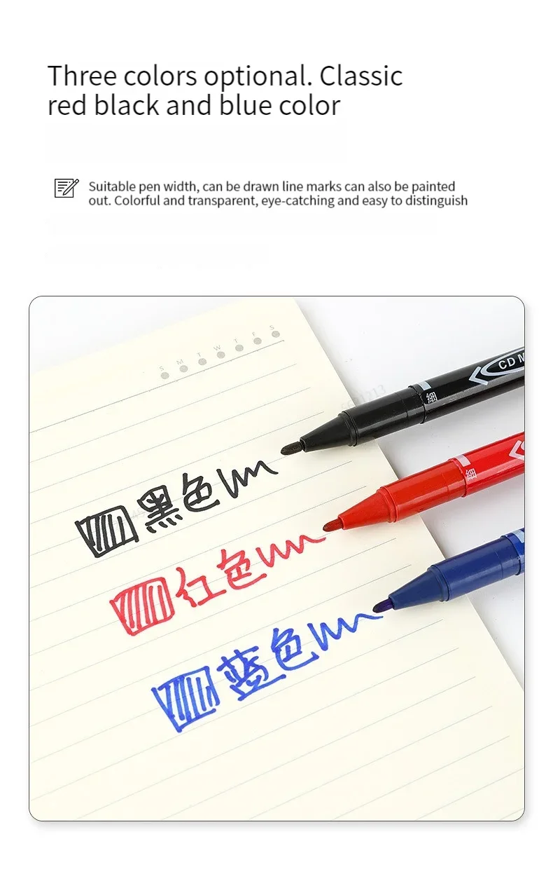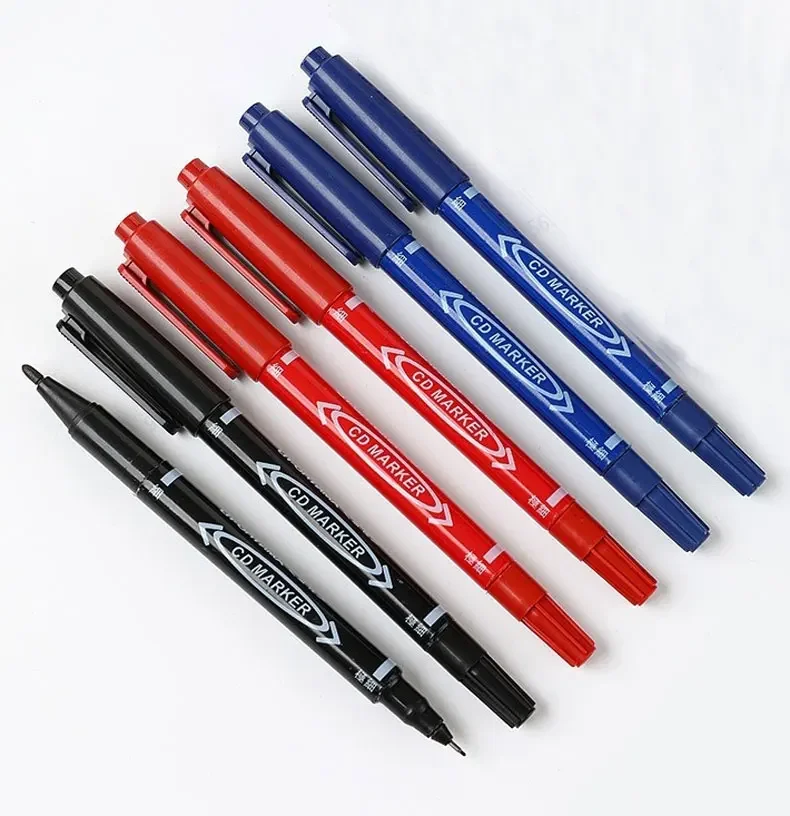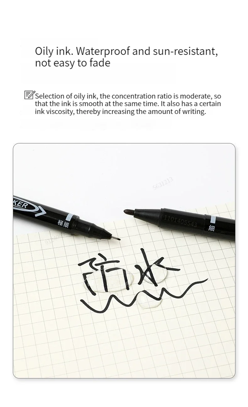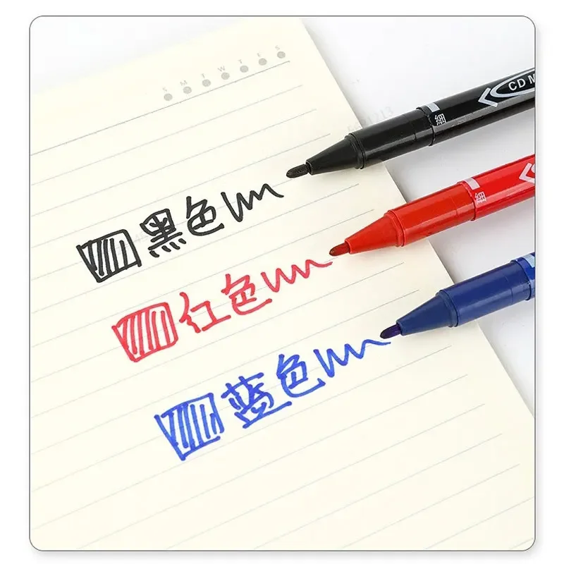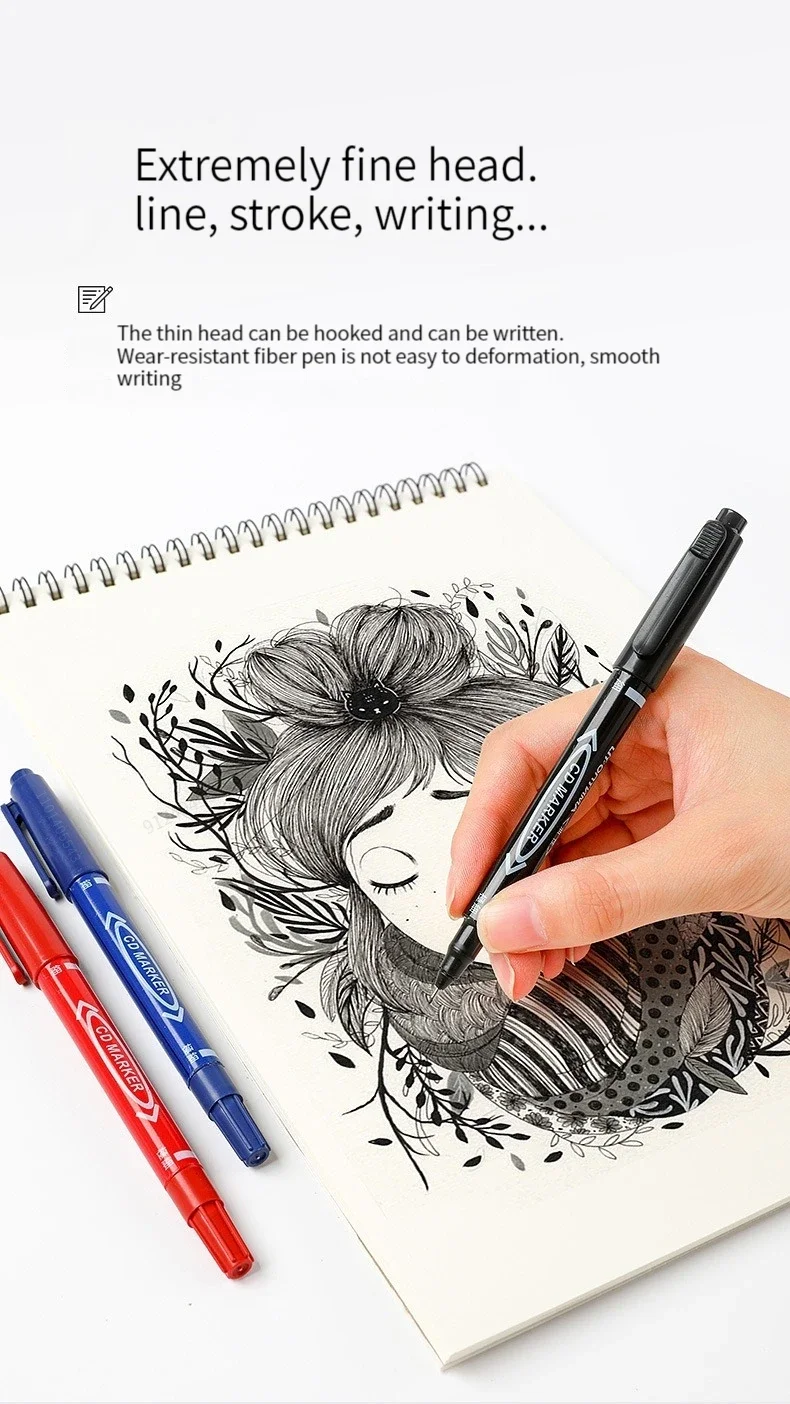 6/12pc Set Waterproof Oily Color Double Tip Permanent Markers Fine Tip Thick Tip Black Ink Drawing Pens Supplies Stationer