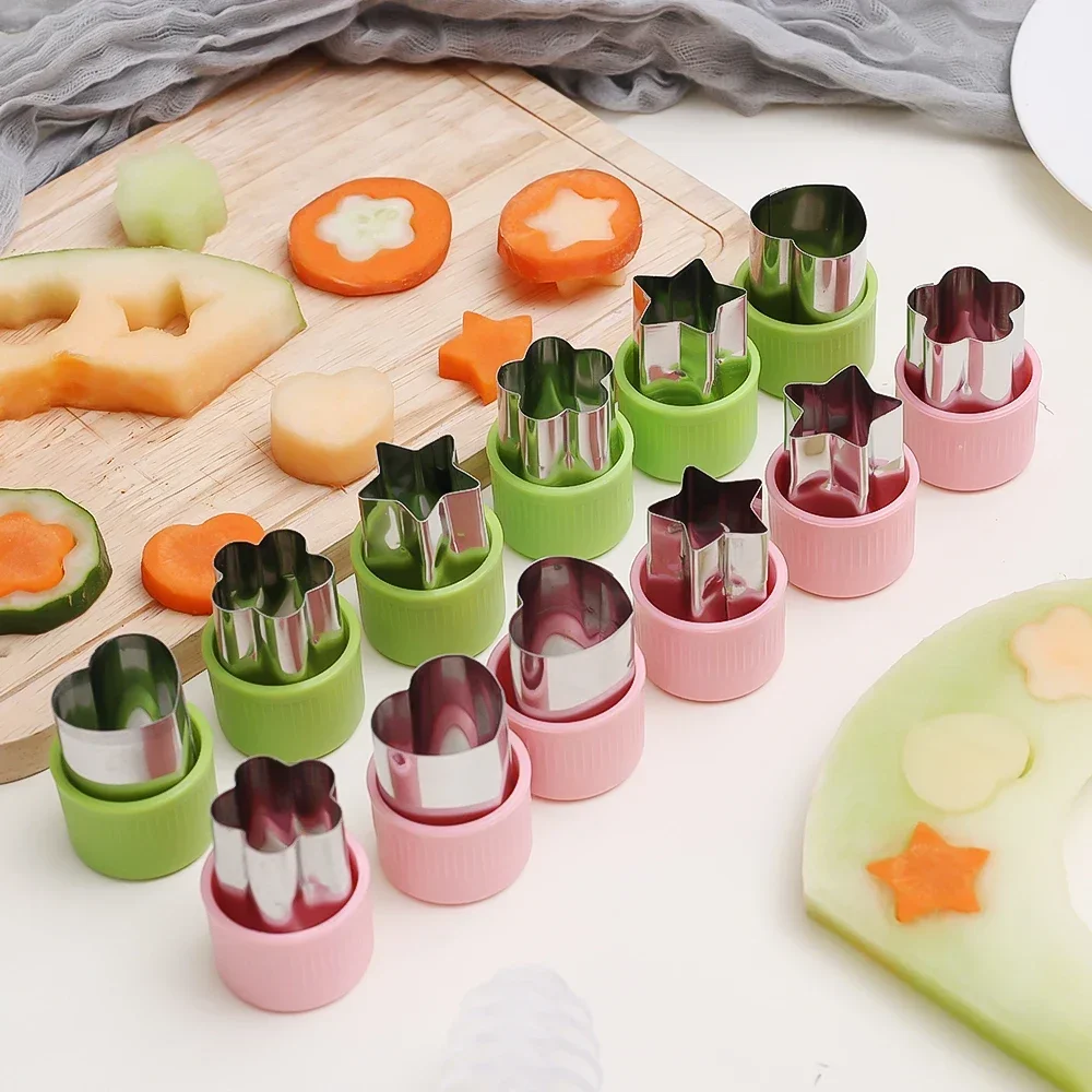 6/3PCS Vegetables Fruit Embossing Cutting Mold New Star Heart Flower Shape Stainless Steel Cutter Plastic Handle Kitchen Gadgets