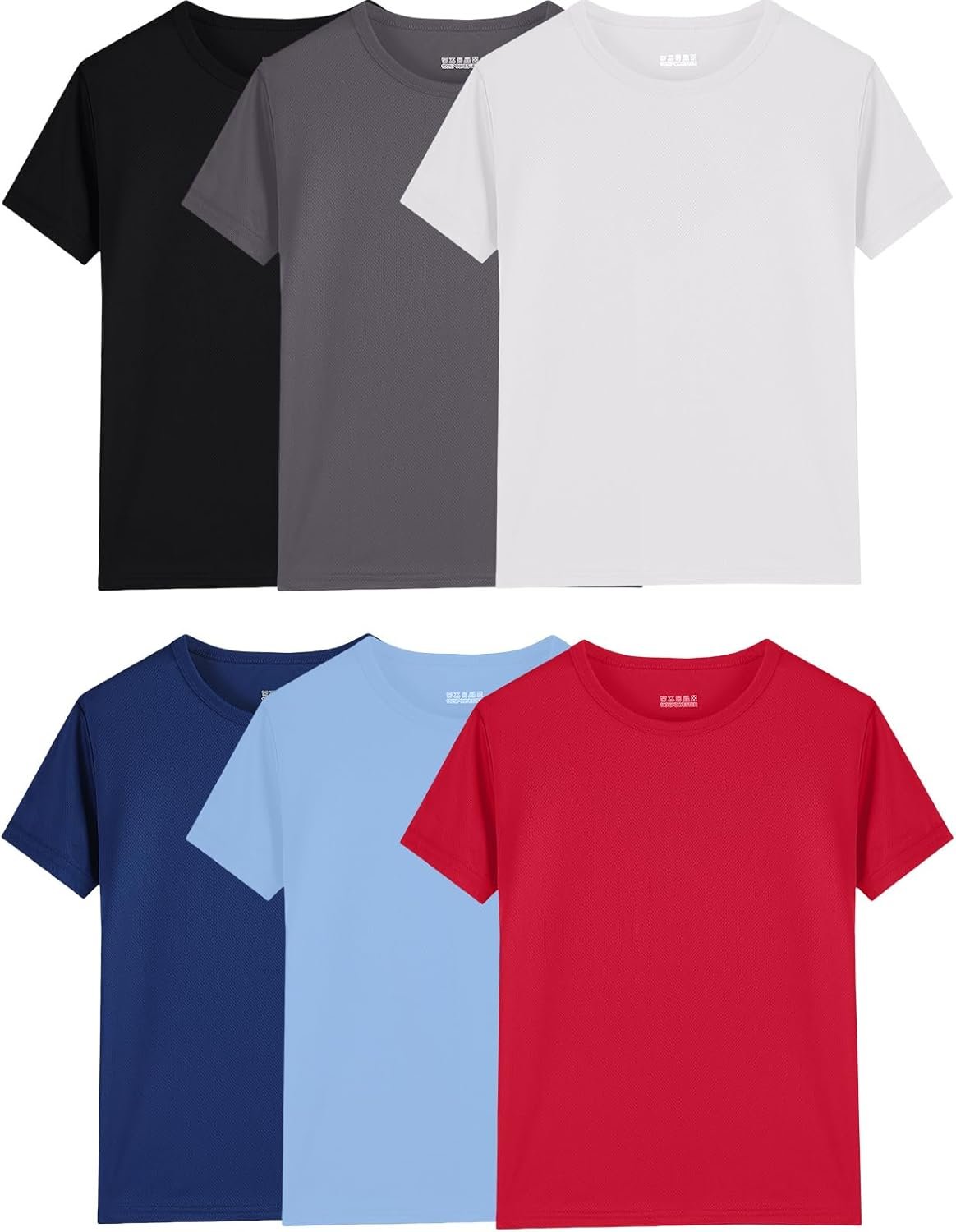 6-Pack Boys Athletic T-Shirts Quick Dry Short-Sleeve Tops Youth Moisture Wicking Running Sports T-Shirts(4-18 Years)