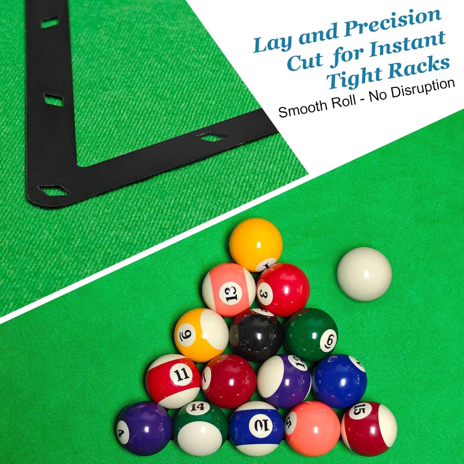 【Table-Felt Protection】 Effectively protect your pool table’s felt with ease.The thin, flat design sits flush with the table, providing seamless ball placement and reducing cloth wear during racking—all while maintaining smooth ball rolling without disruption.