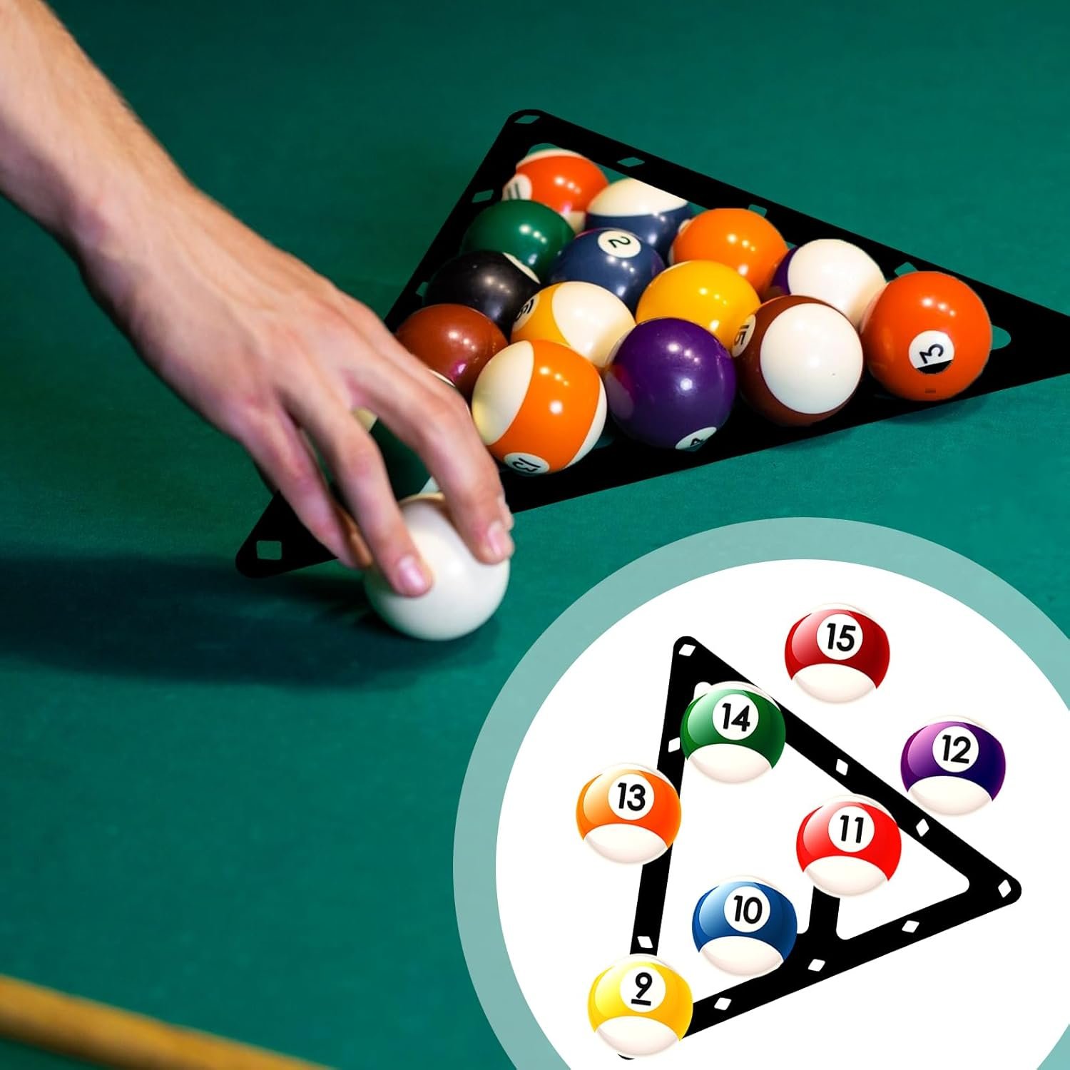 【Space-Saving and Easy to Store】Measuring 9.65×9.65in, the Triangle Billiard Rack is extremely space-saving and easy to store. The ultra-thin and flexible material makes it easy to handle and transport. Pool table accessories are the ideal choice for billiard players who value comfort and efficiency without compromising on quality.