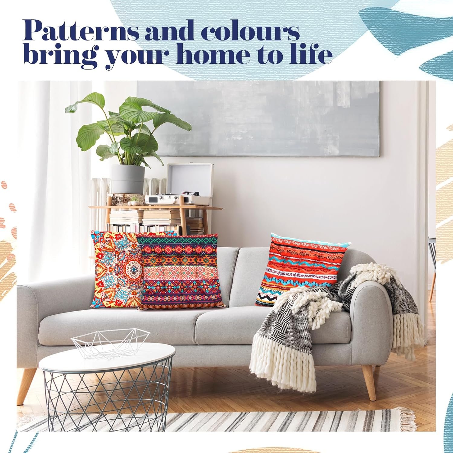 The floor seating cushions feature eye catching, ethnic characteristics design, which is combined of floral and geometric patterns.