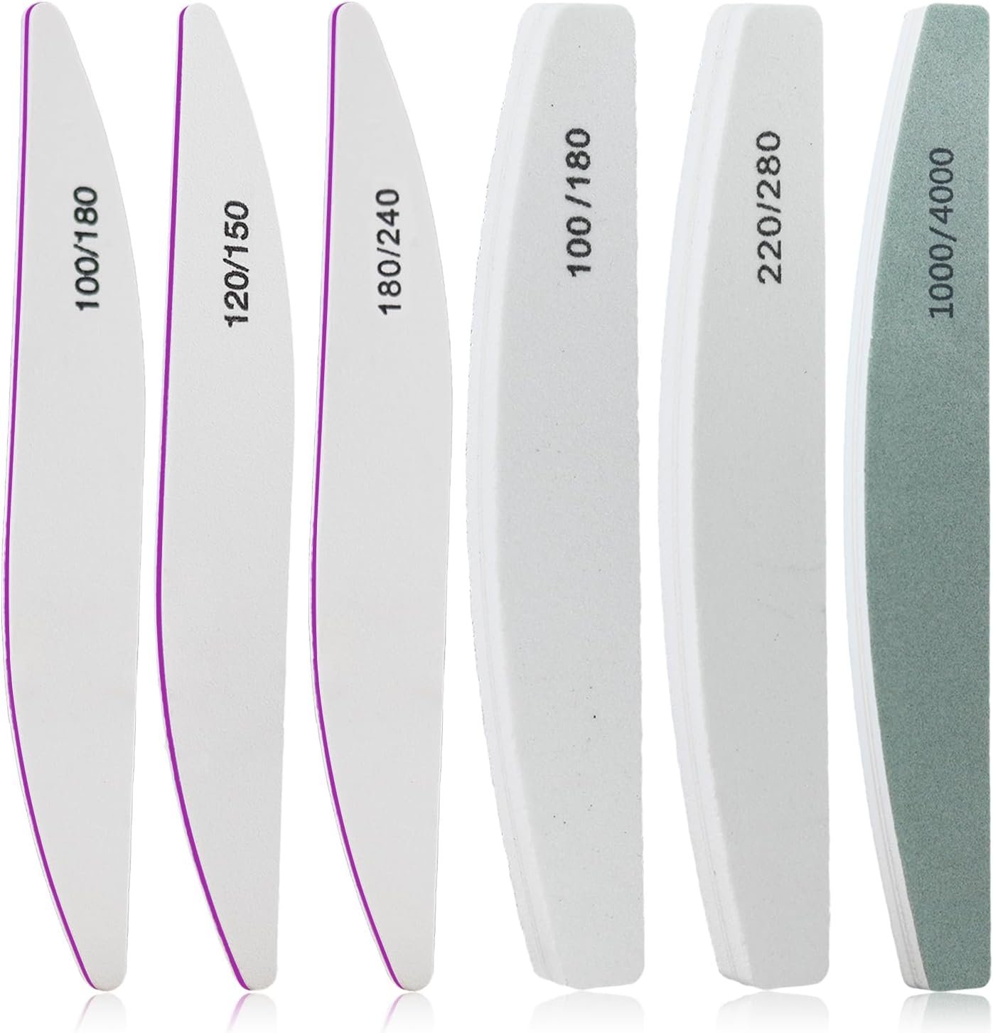 6 PCS Nail File Buffer Set for File/Buffer/Shine, Nail Files Kit for Natural Acrylic Nail, Emery Boards for Thick Nails, 100/120/150/180/220/240/280/1000/4000 Grit for Salon and Home