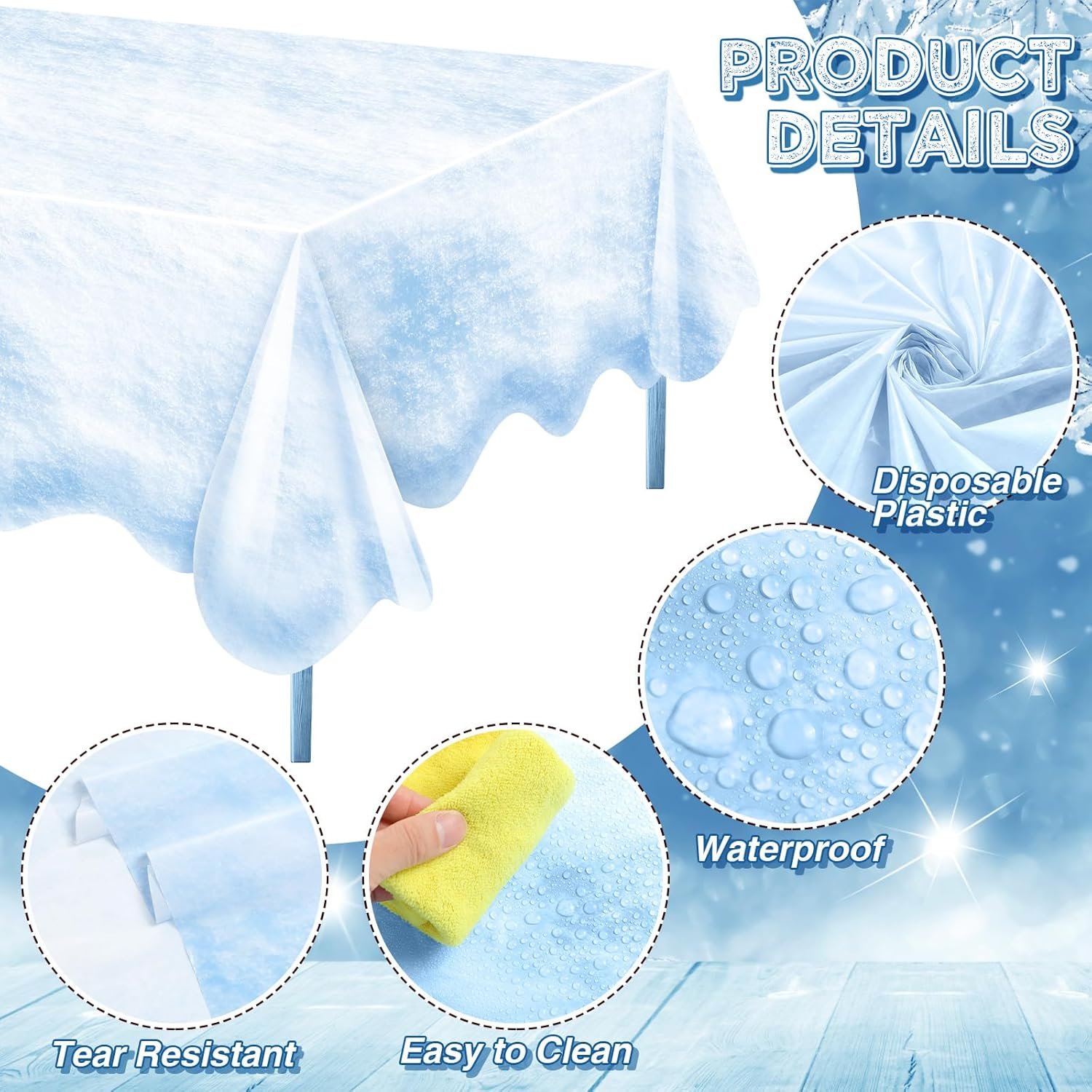 Waterproof Material: these ice and snow plastic tablecloths are made of plastic material, which is waterproof, strong, stain resistant, smooth surface, not easy to damage, stain-resistant, easy to clean; After the party, throw them away or simply wipe them to quickly restore the clean appearance of the table