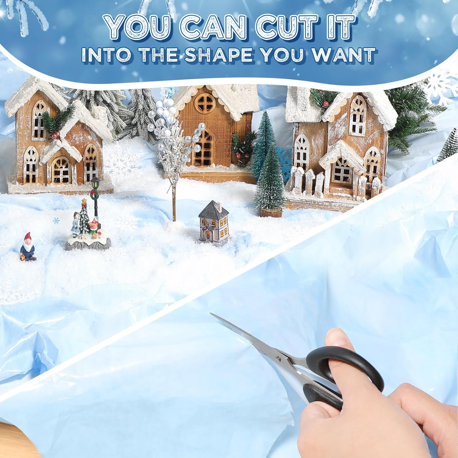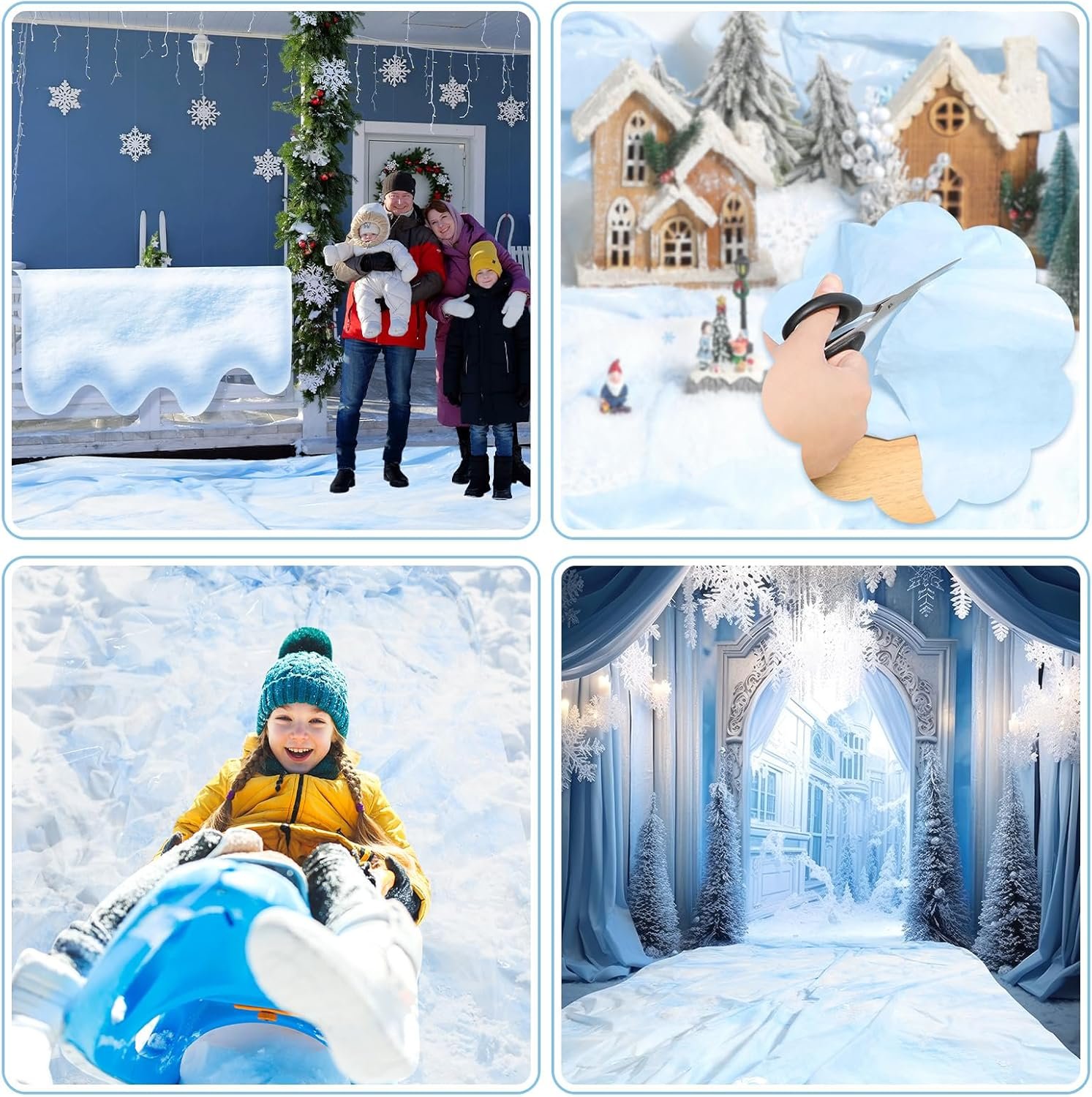Snow Decoration Package: you will get 6 sheets of snow scene decoration cloth, more quantity for replacement or sharing with friends; The quantity is enough to meet your party decoration and replacement needs, suitable for Christmas, New Year party, winter and gathering