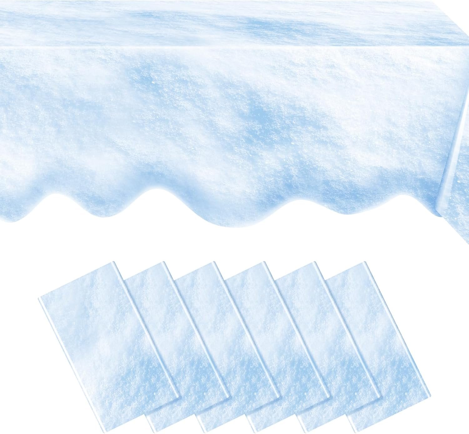 6 Pcs Snowflake Tablecloth Fake Snow Winter Tablecloth Plastic Snowflake Table Cover 54 x 108 Inch Waterproof Decoration Snow Cover for Winter Holiday Birthday Party