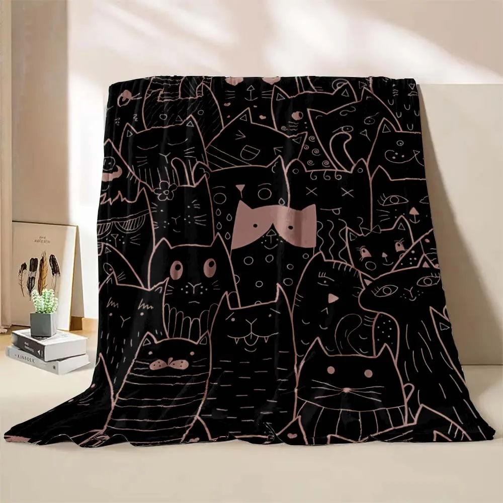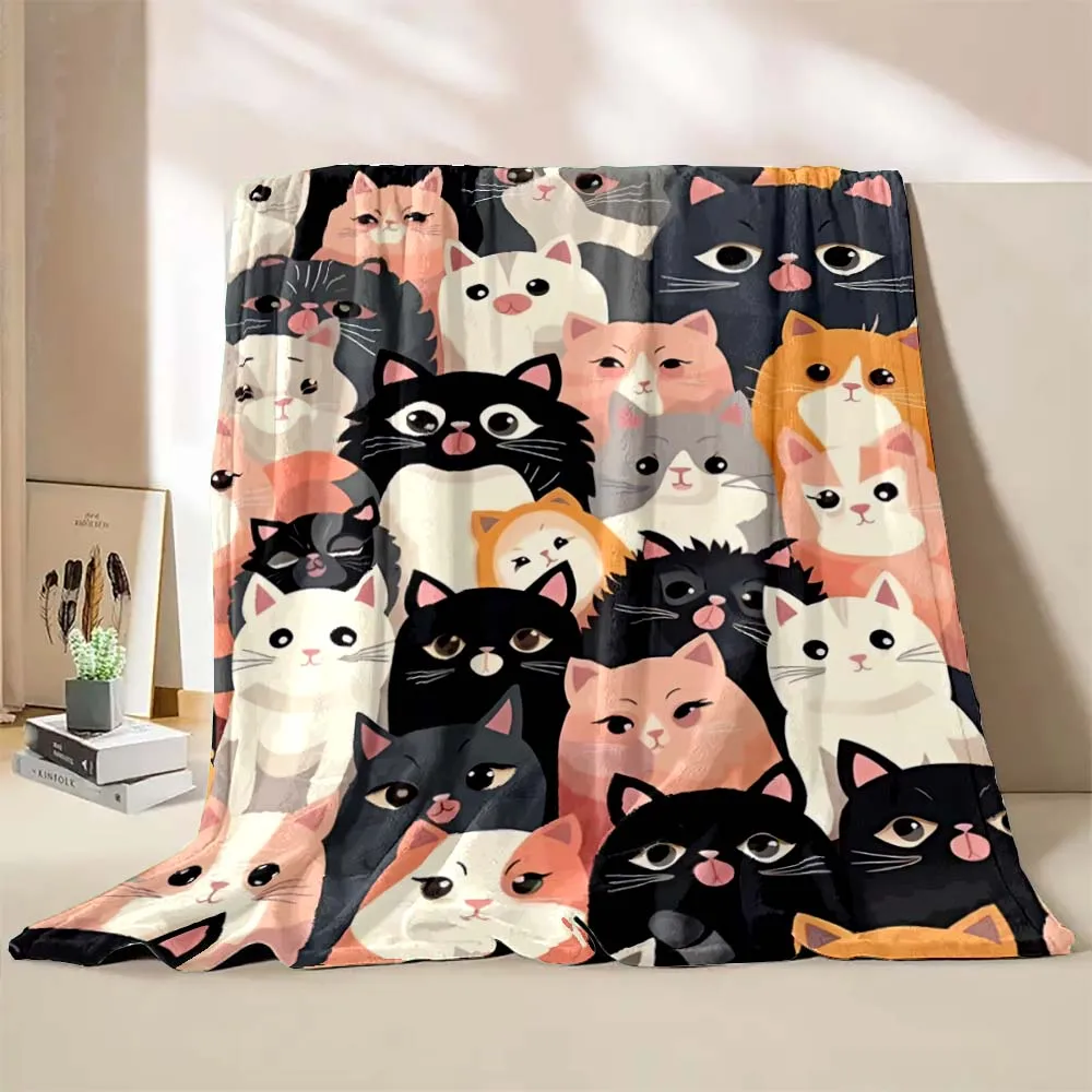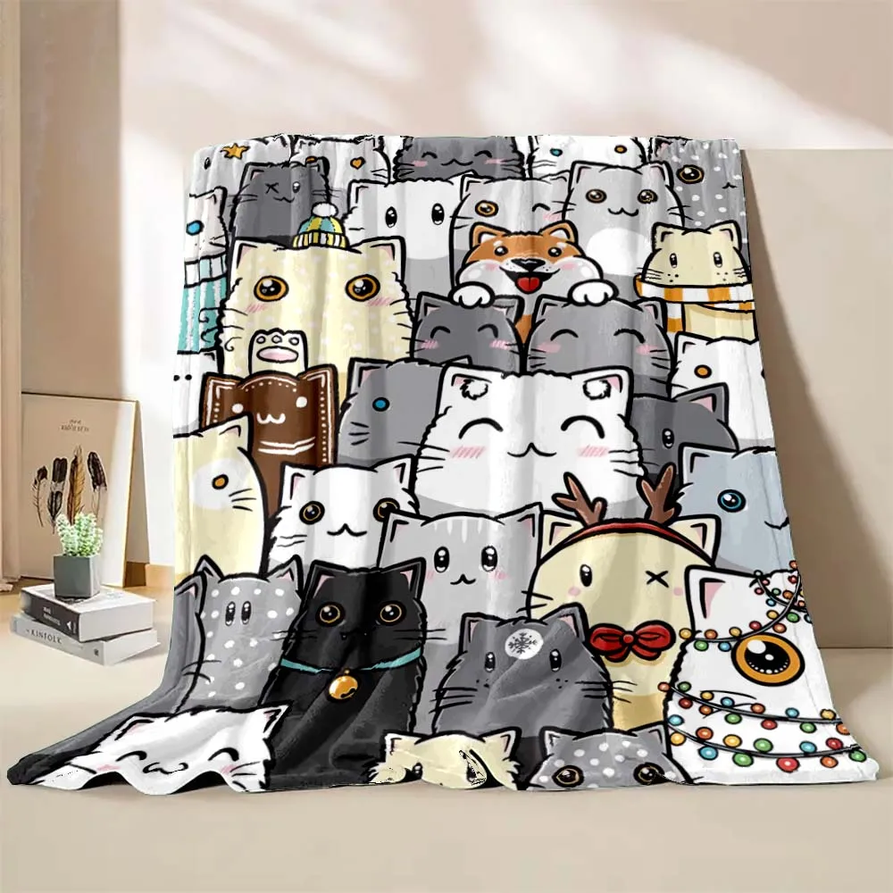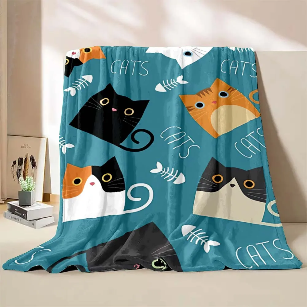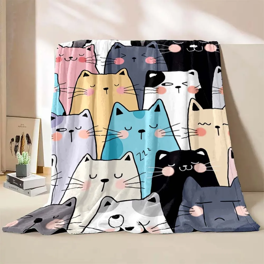 6 Sizes Cute Cartoon Cat Printed Believer Blanket Warm Soft and Comfortable Home Travel Blanket Office Sofa Blanket Play Mat