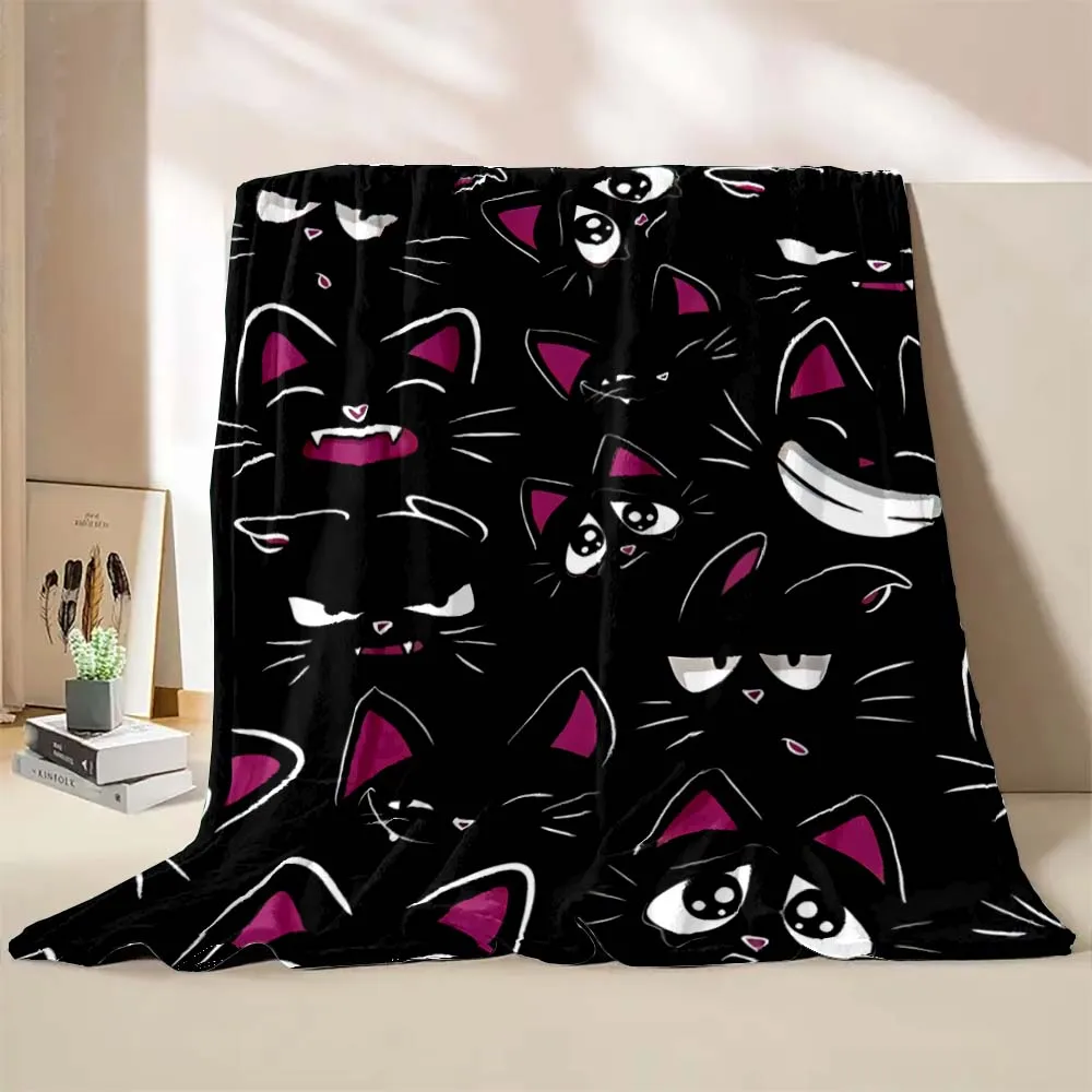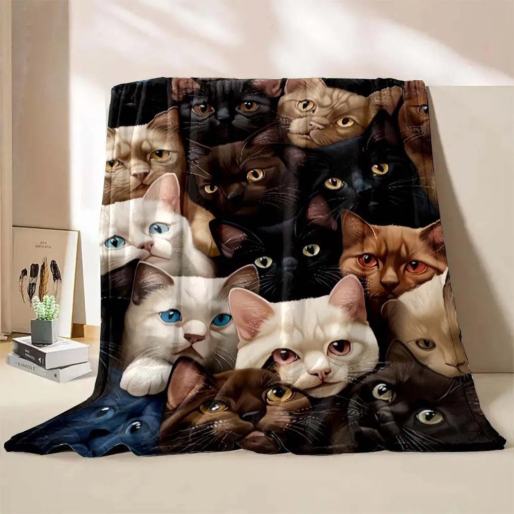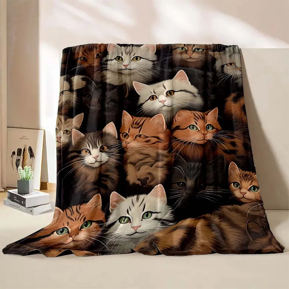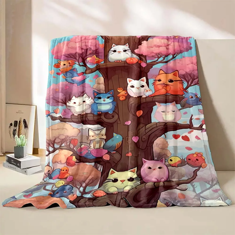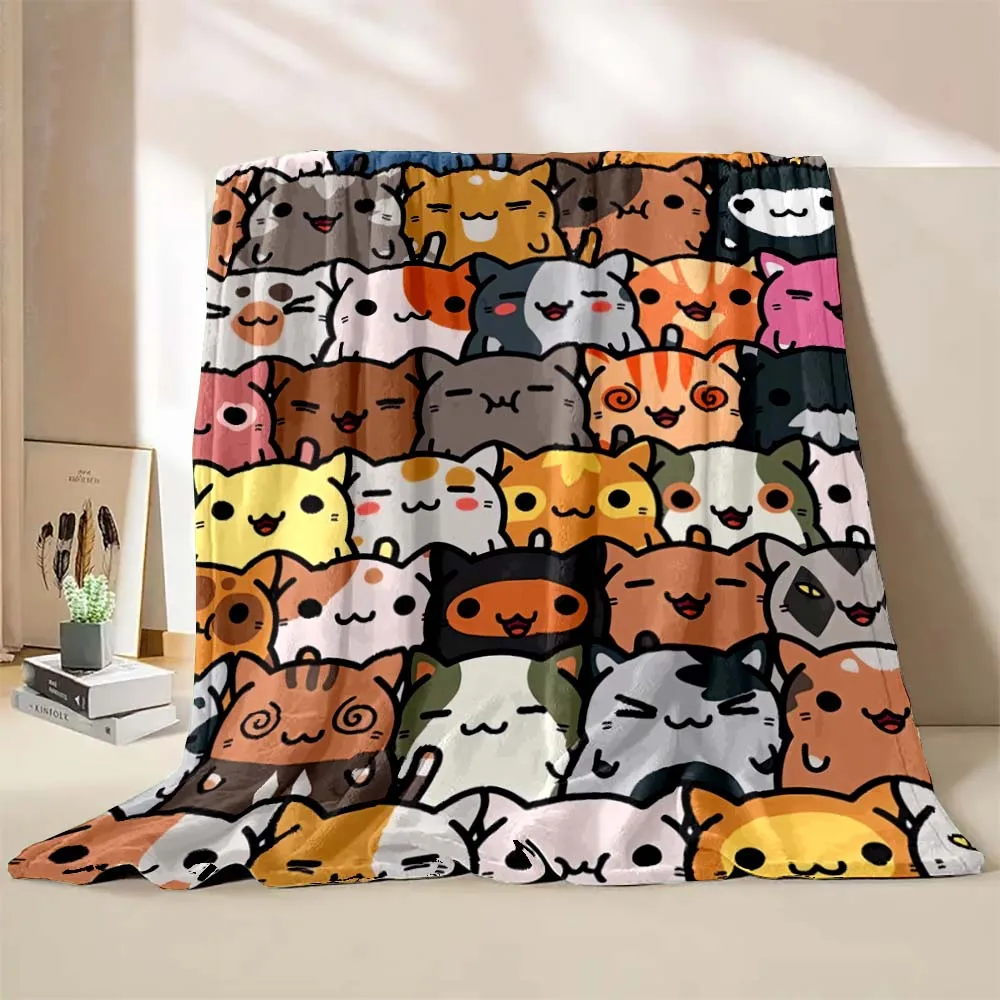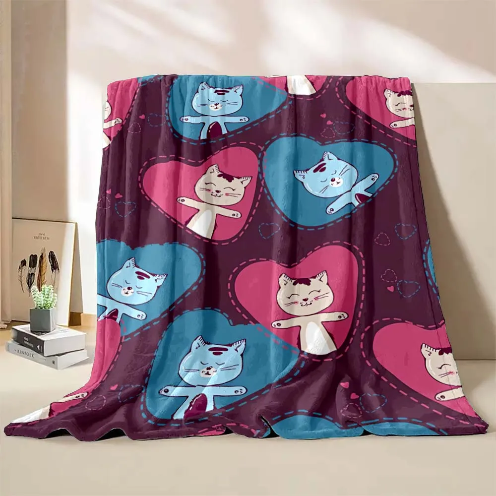 6 Sizes Cute Cartoon Cat Printed Believer Blanket Warm Soft and Comfortable Home Travel Blanket Office Sofa Blanket Play Mat