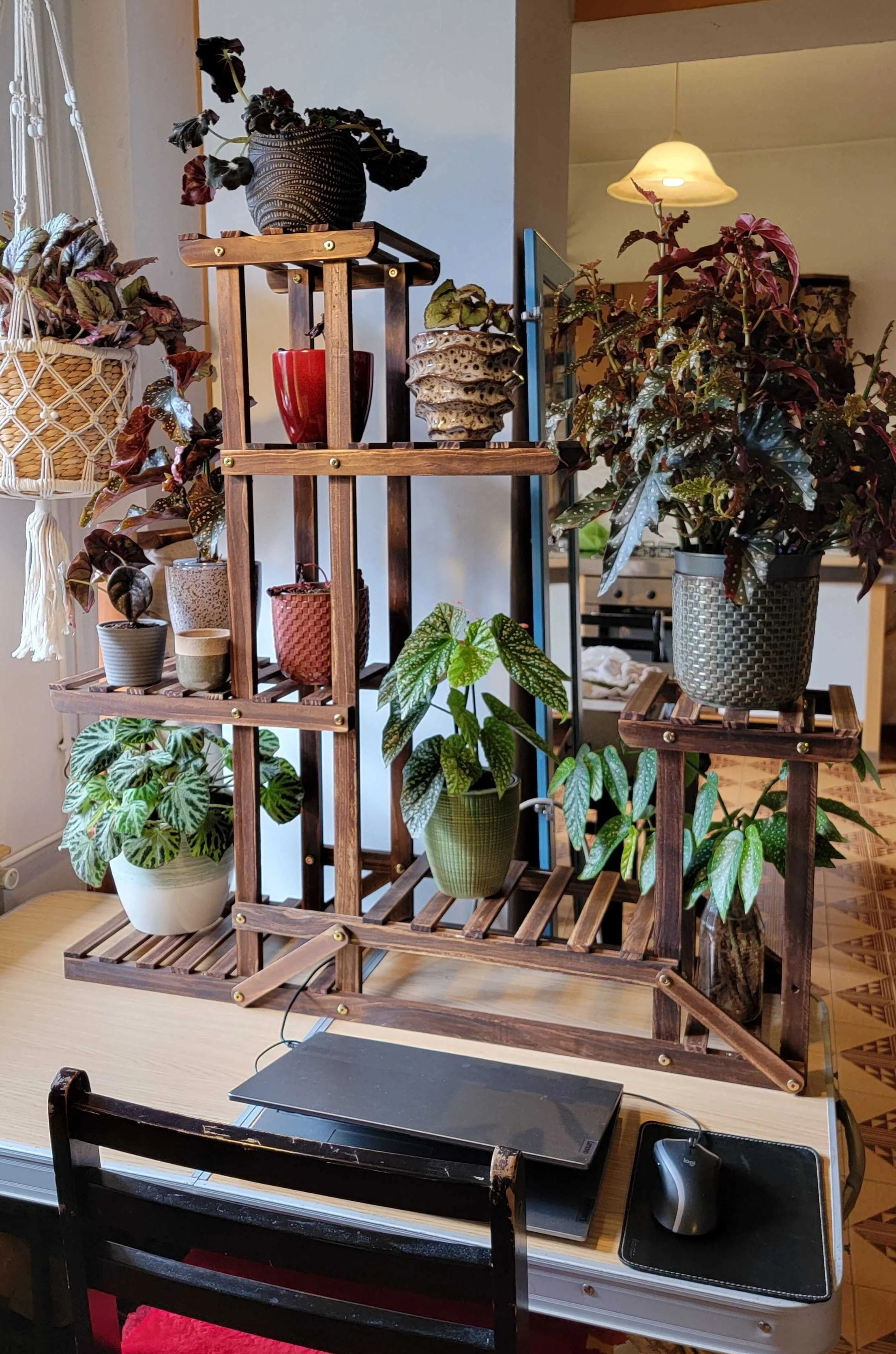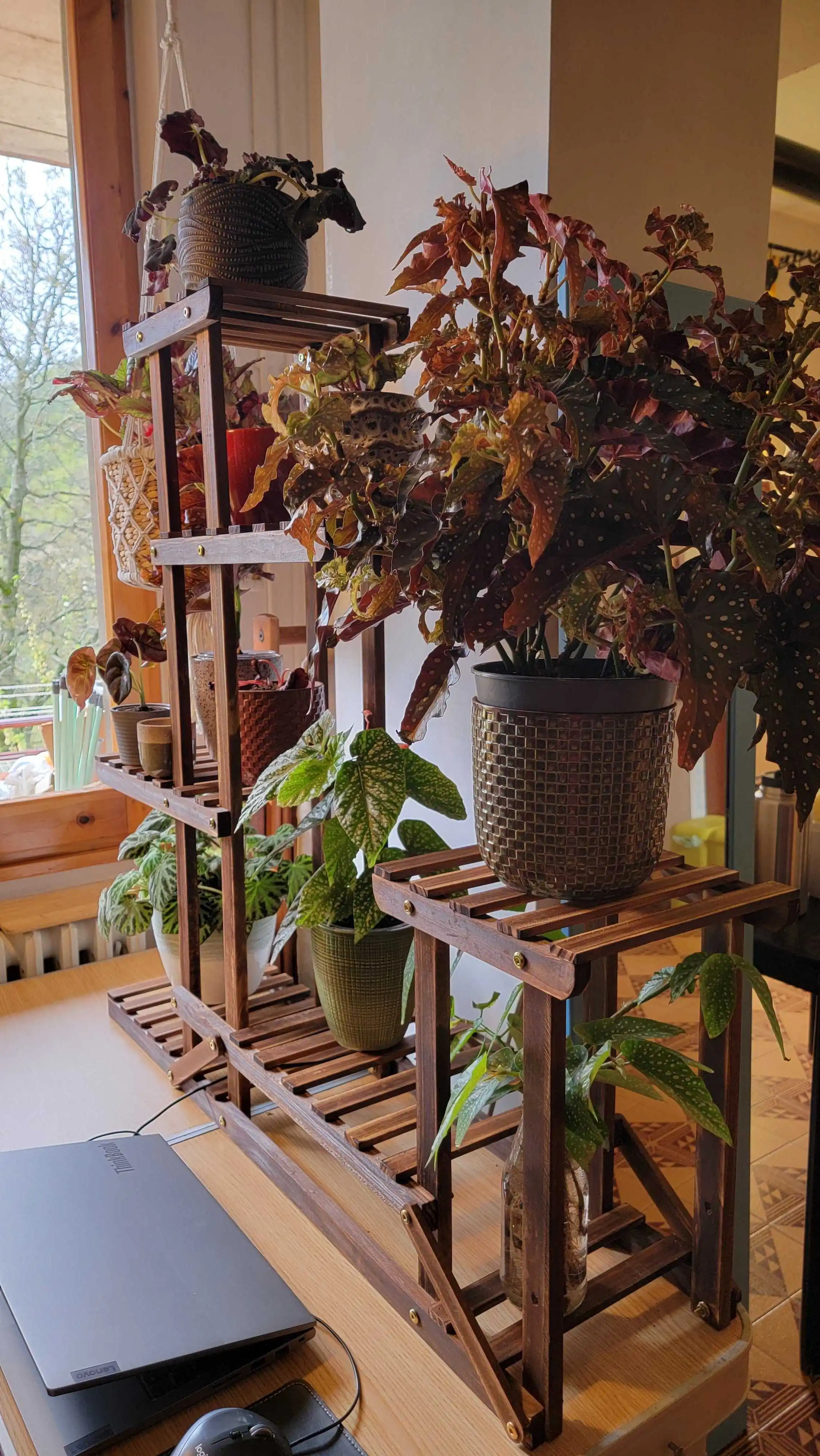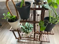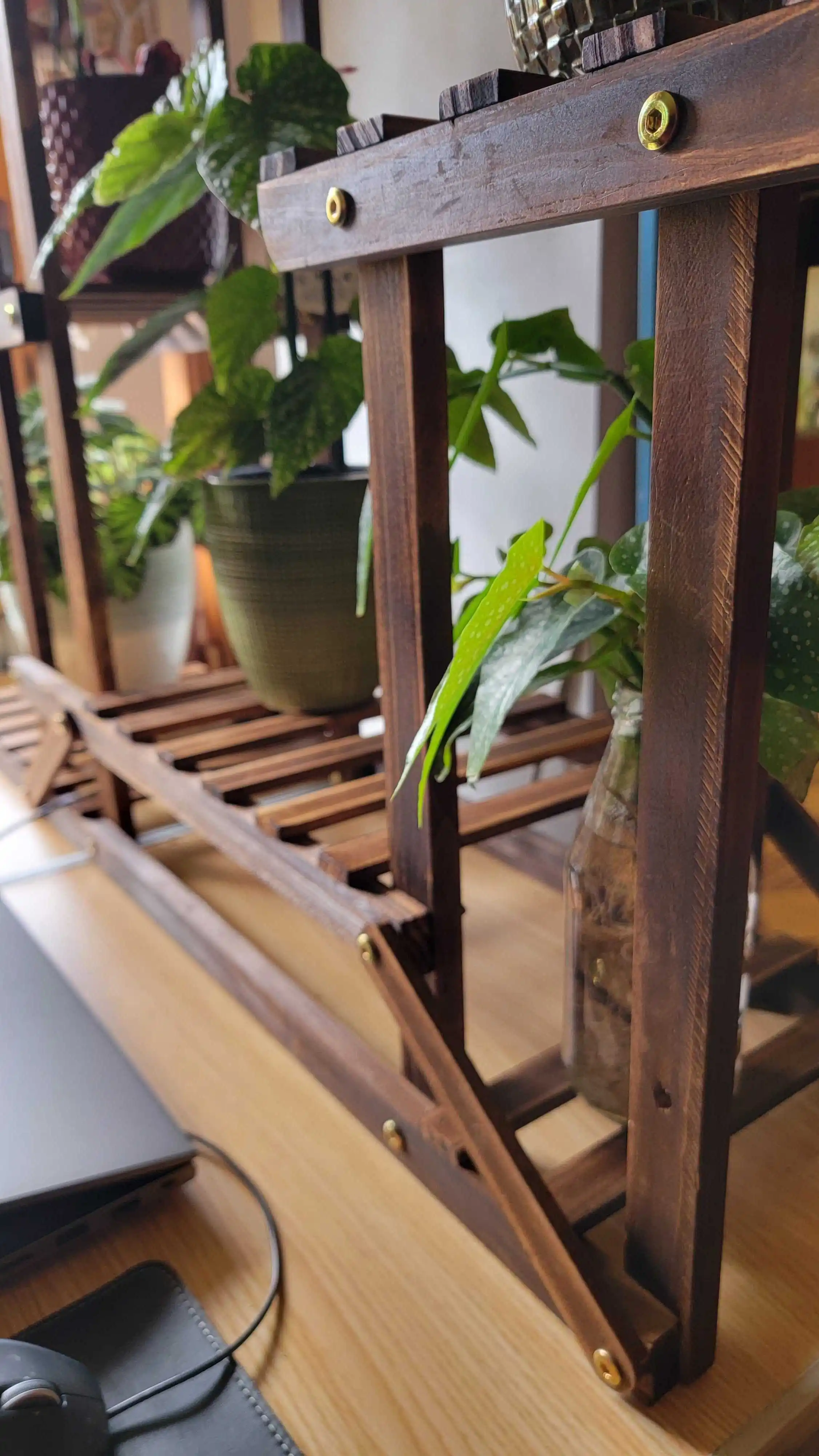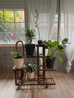 I’m very happy with the wooden plant stand. It holds six plants and was very easy to assemble. Well packaged and with fast delivery.