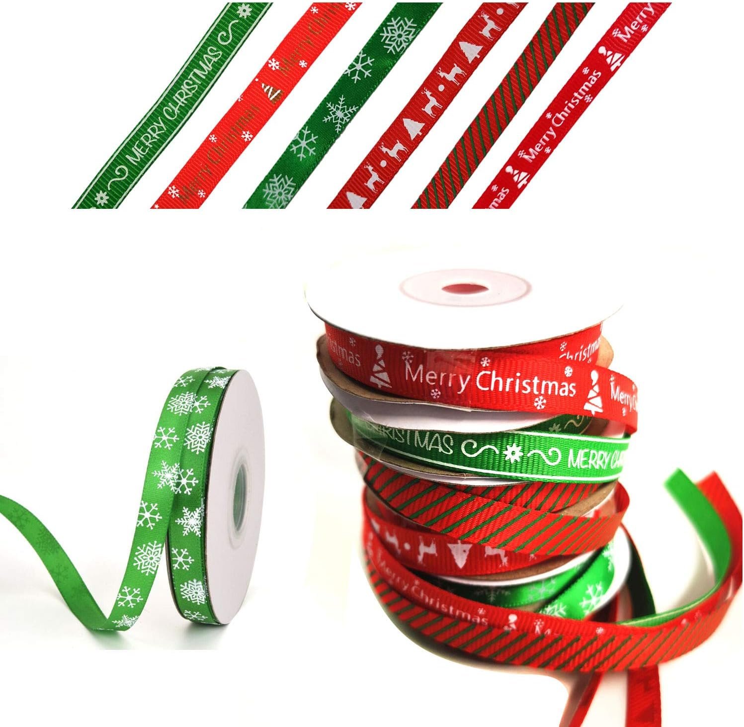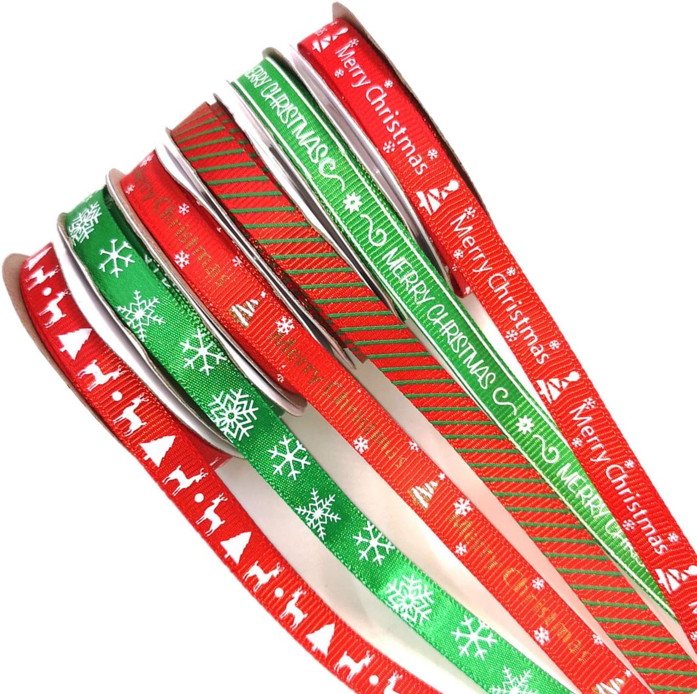 【Rich of Printed】 BANERLE Christmas themes ribbons printed red and green stripes, snowflake, Christmas hat, merry Christmas, Christmas tree, elk, with green, red, white, gold base color. Colors as picture shown, machine washable with no color fade, even works well outside in rain or sunshine; Variety of colors are available for all your needs.