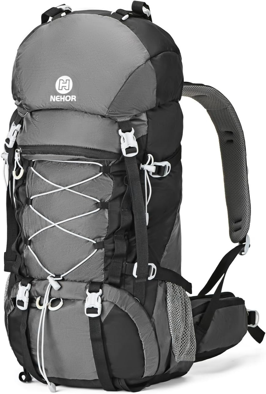 NHHOR 60L Travel & Climbing Daypack is designed for travel & outdoor enthusiasts which has no inner frame.Made of premium quality and durable materials, make sure for long-time use. It will bring you a fantastic outdoor experience.With the ergonomic design, our breathble and lightweight travel backpack make you more travel more comfortable.