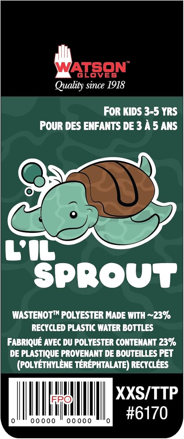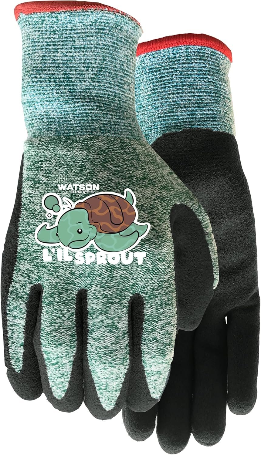 Watson Gloves, #6170 – L’il Sprout, Sustainable Garden Gloves for Kids – Eco-Friendly, Made of Recycled Products, Sure-Grip, Ergonomically Formed, Snug-Fitting (1 Pair, One Size/Extra Extra Small)