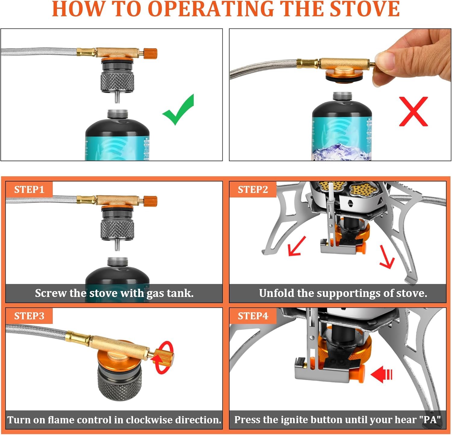 【Multi-Gas Compatibility】Compatible with isobutane, butane, and 1 lb. propane tanks, this stove offers unmatched versatility. The extended 50cm hose provides added safety and convenience compared to standard 30cm hoses.