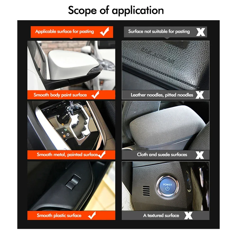 Flexible and durable, can be stick to almost any surface like automobile roofs, trunk lids, bumpers, fenders, dashboards, door handles… Even your laptop, cellphone, and so on.