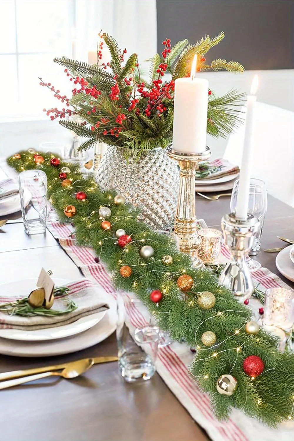 6ft Christmas Green Garland with LED Lights Realistic Cedar Garland and Cypress Garland Holiday Fireplace Table Centerpiece