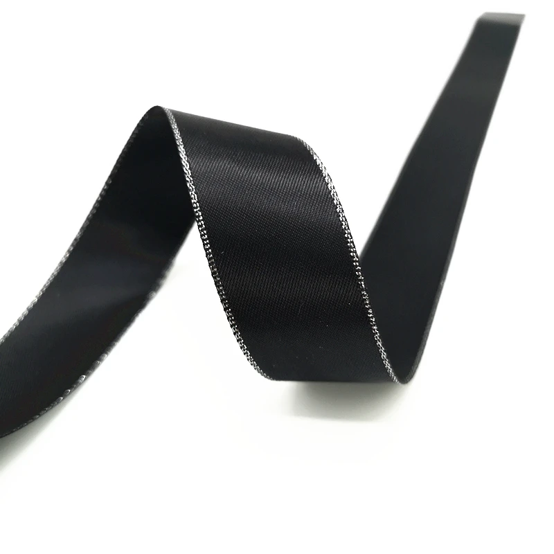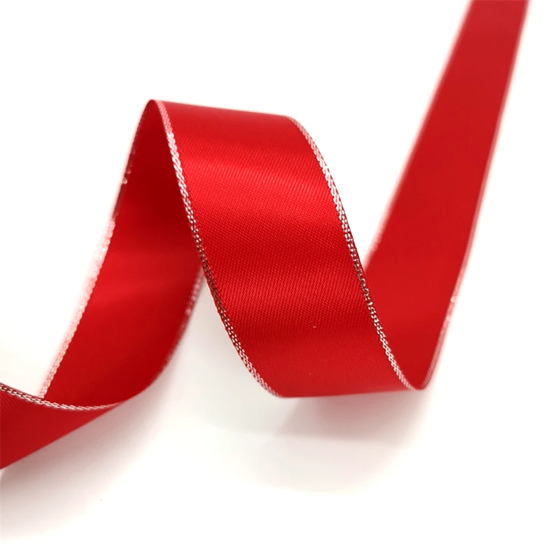 6mm-38mm Hight Quality Silver Metallic Edge Polyester Satin Ribbon For Flower Gift Packing Wedding Decoration DIY, 5 yards/lot