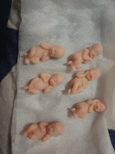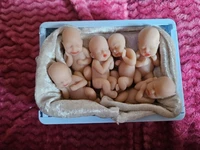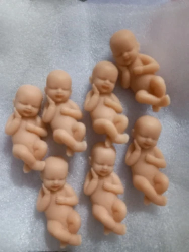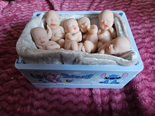 These set of tiny silicone dolls are as described, a real nice soft silicone. , 2 were the same but the other 4 were all different in the face and position of limbs varied. Only thing that let them down was the over done colouring of the lips but thats coming from a reborn doll artist. A child wouldn’t really be that bothered though, for the price of 6 they are very good value indeed. Would look soo cute wrapped up and in a tiny cot or sleeping bag for each one, this would make 6 tiny gifts in all . Would recommend.