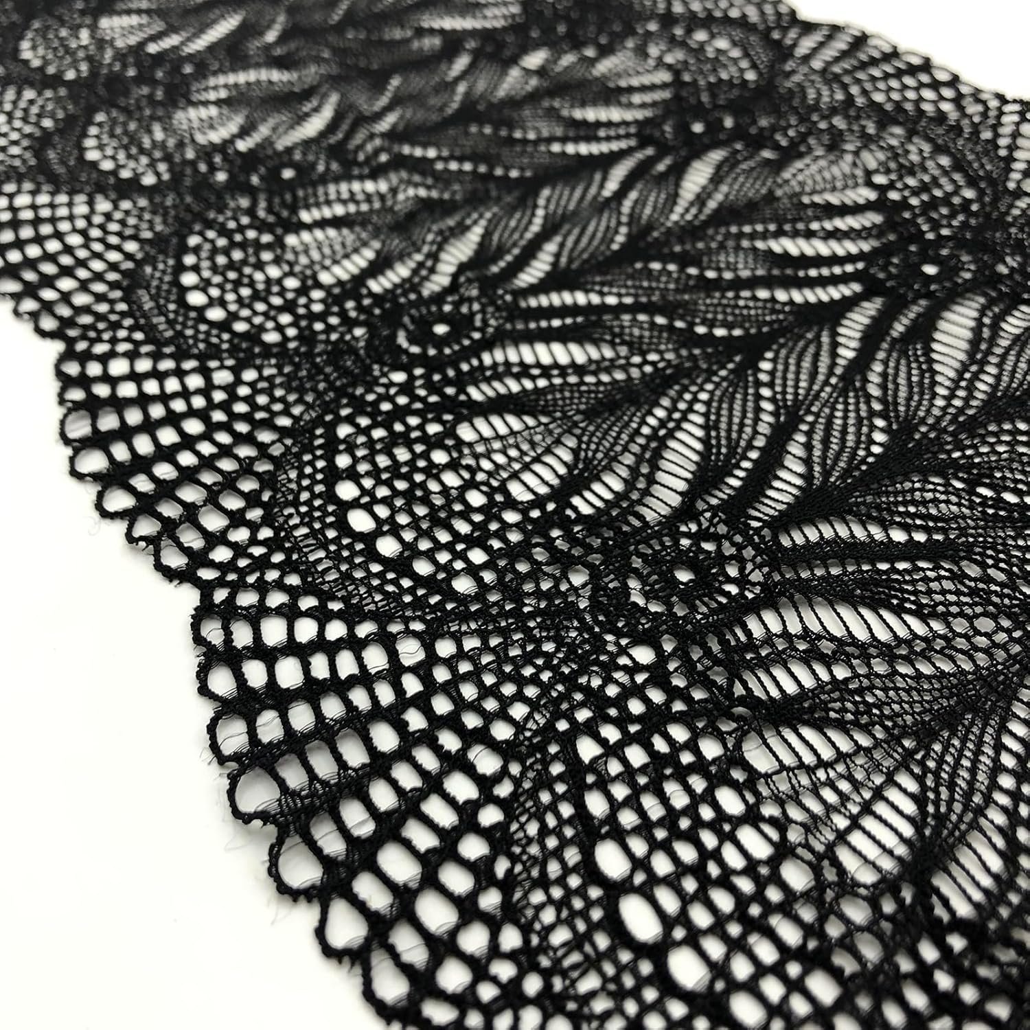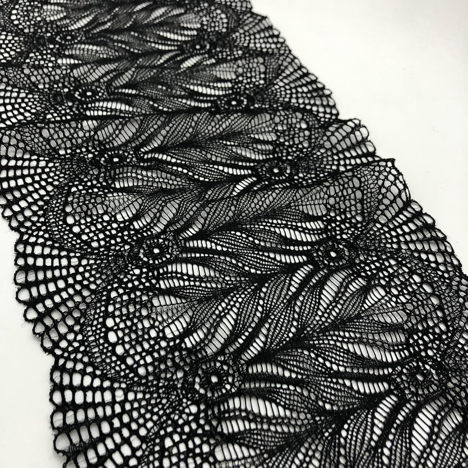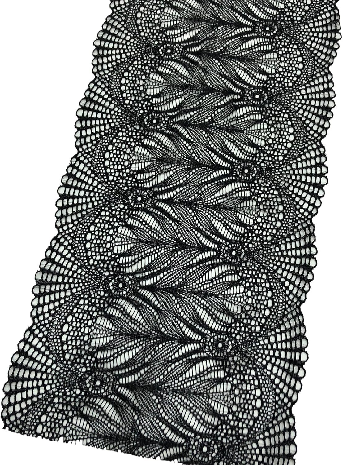 7 Inches Wide Lace Stretch Lace Ribbon Trim Lace Fabric for Sewing, Table Runner, Garment and DIY Crafts -5 Yards – 5002 (Black)