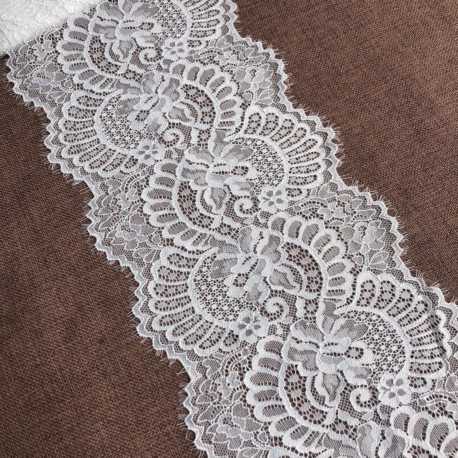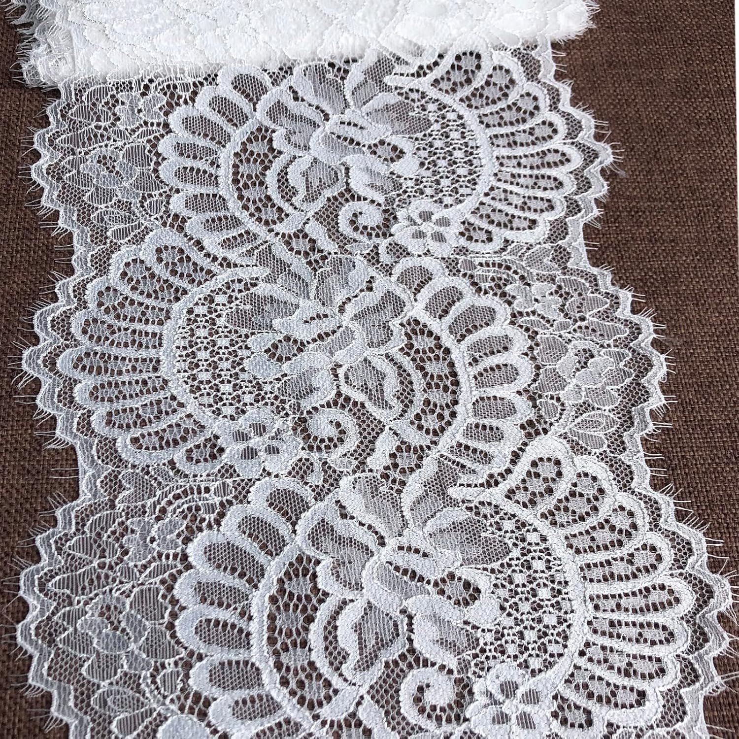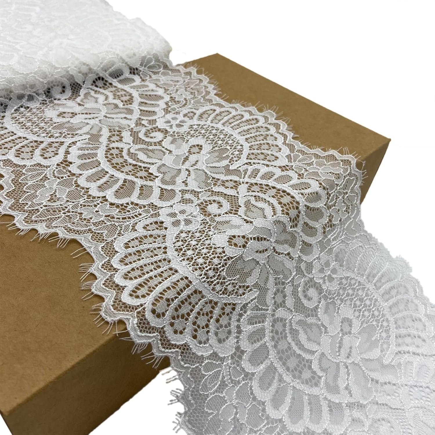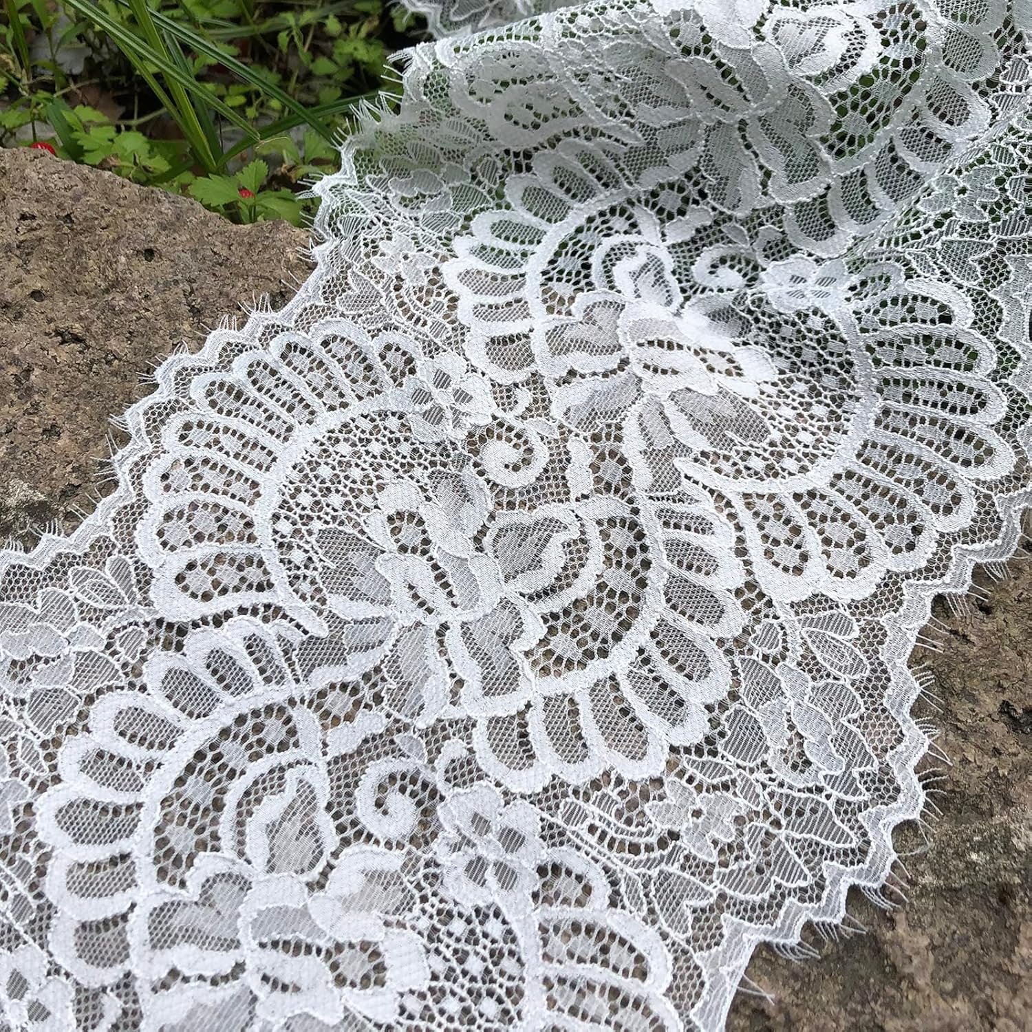 7 Inches Wide White Stretch Lace Fabric with Eyelash Elastic Lace Trim Ribbon for Bridal Wedding Decorations, Sewing DIY Making and DIY Crafts- 5 Yards (9184 White)