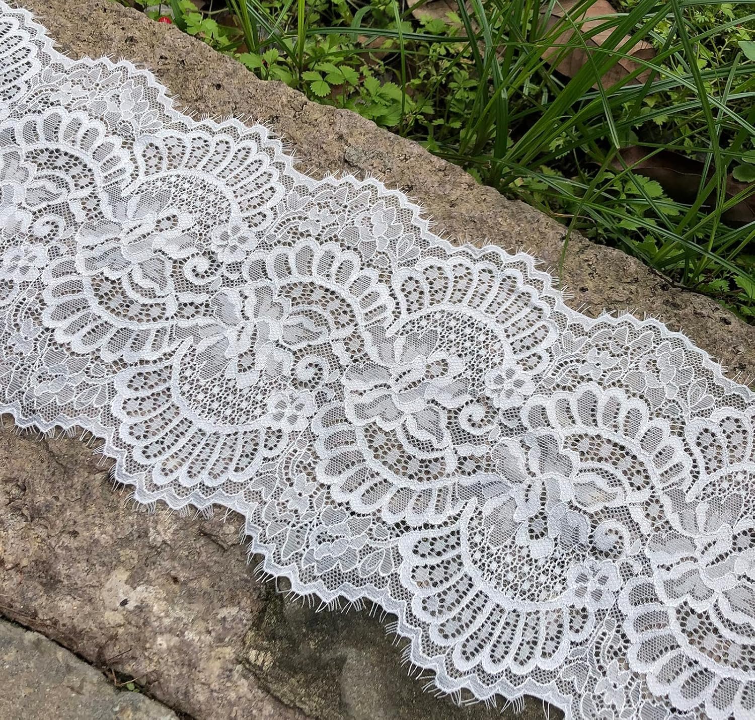 White stretch lace fabric, Eyelash lace trim with floral pattern