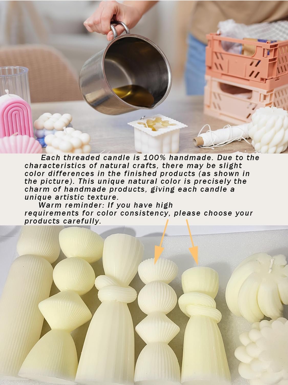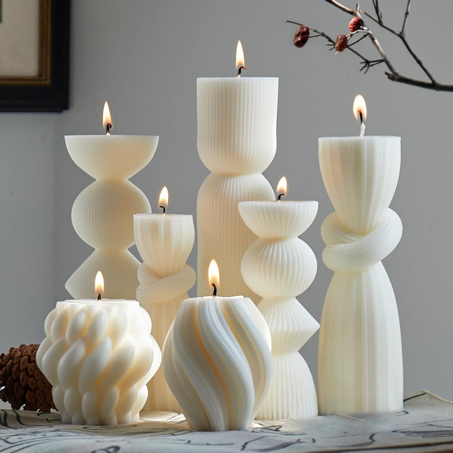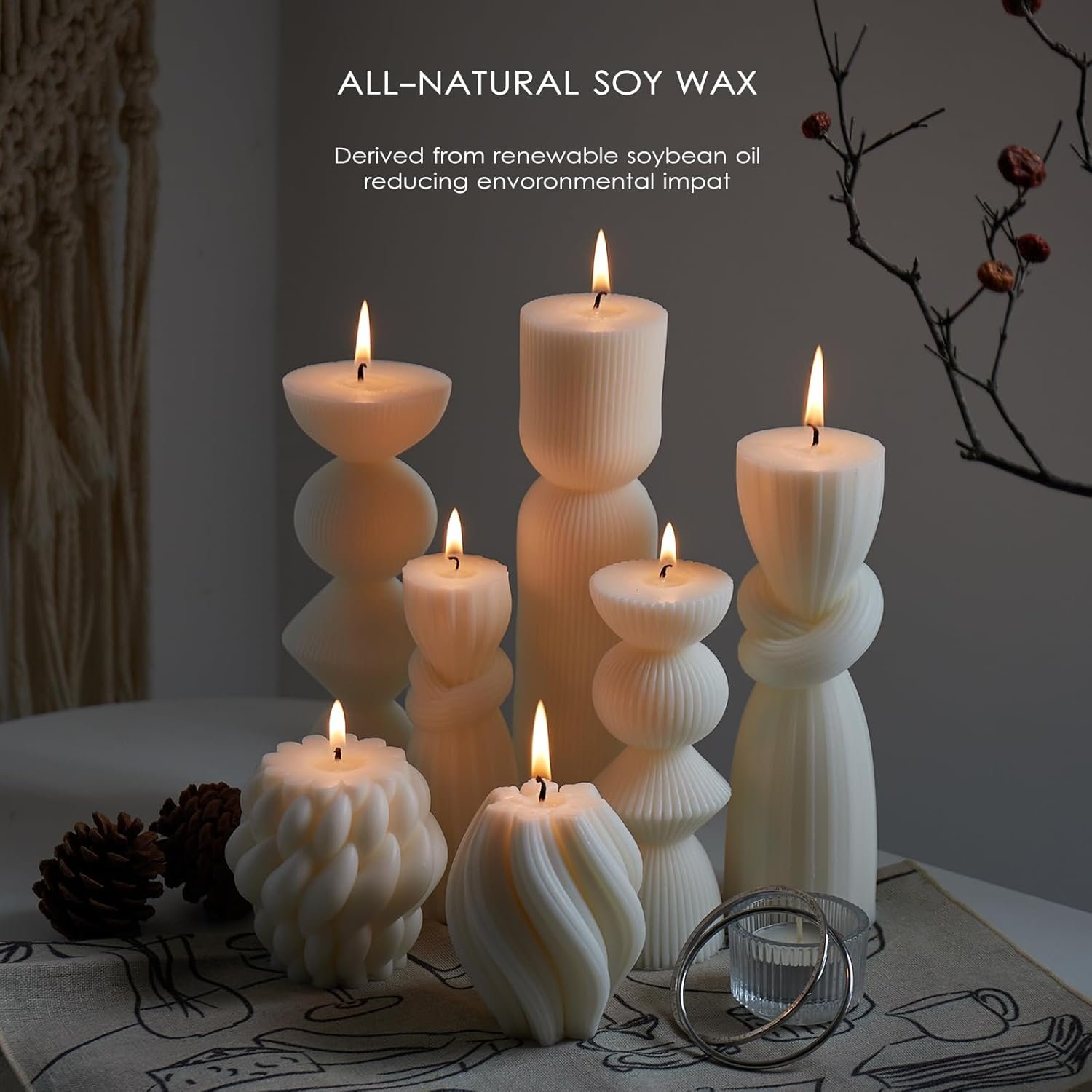 7 Pcs Large Pillar Candles Aesthetic Candle Modern Home Decor Ribbed Candles Set Beautiful Handmade Pillar Housewarming Gift Home Room Shelf Decor Idea Soy Wax (White)