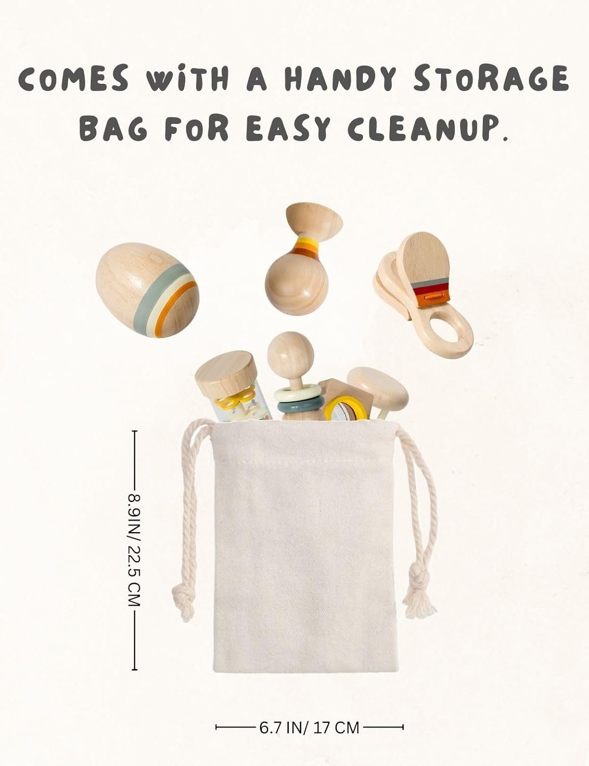 7 PCS Wooden Baby Toys Set – Organic Infant Rattles Newborns 0-6 Month & Montessori-Inspired Musical Instruments for 0-12 Month – Natural Toddler Developmental Toys