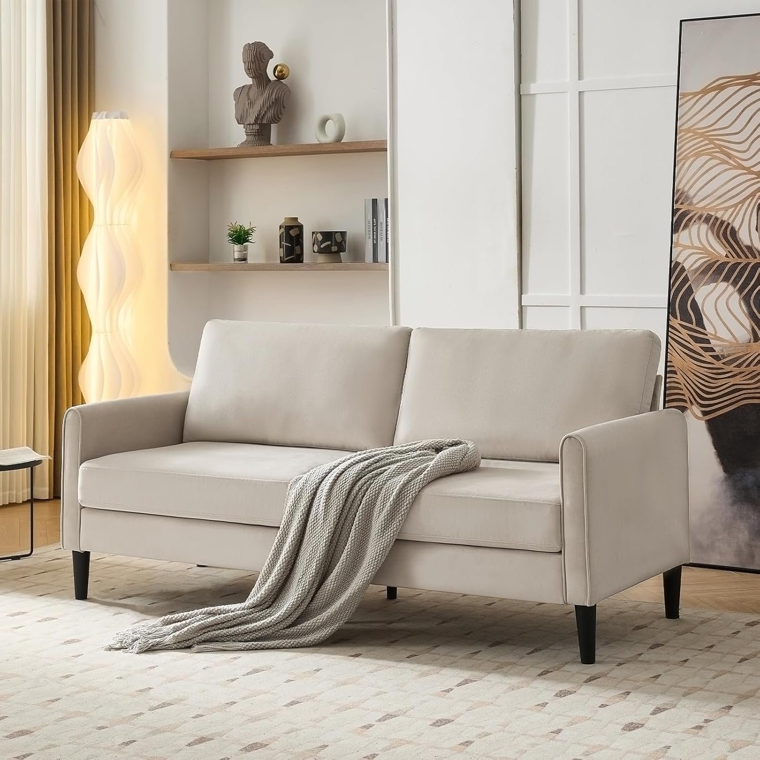 72.8” Upholstered Modern Sofa, 3 Seater Comfy Couch for Bedroom and Living Room, Designed for Small Spaces, Apartment, Bedroom, Dorm, Office, Easy Assembly (Velvet, Beige)