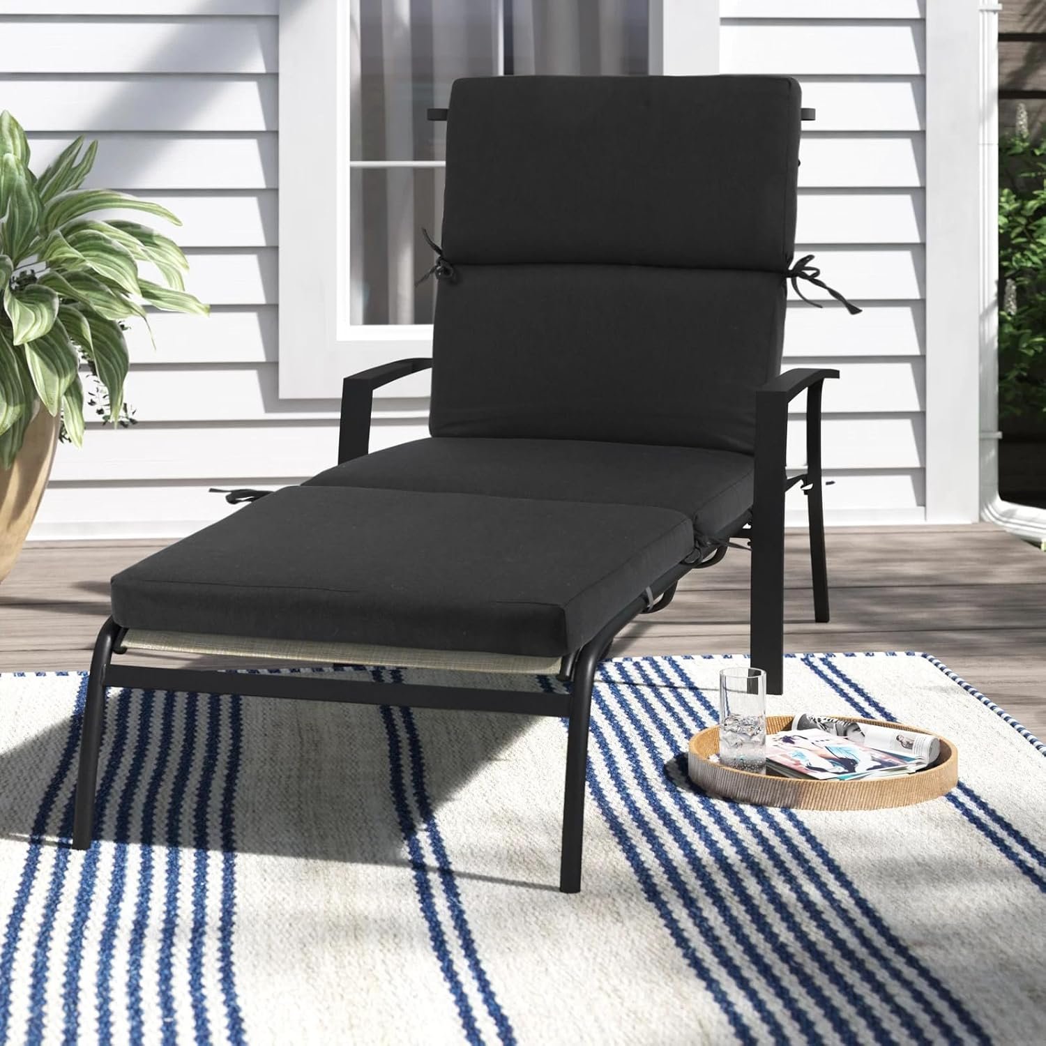 【ANTI SLIP TIES】 6-sets of ties to hold in place This outdoor chaise lounge cushion comes with fabric ties to prevent accidental slips or skids