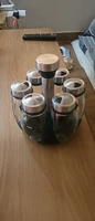 13 reviews for 7pcs Spice Jar Set Rack Glass Organizer Rotating Glass Seasoning Sugar Pepper Bottles Salt Shakers Holder Kitchen Storage Rack