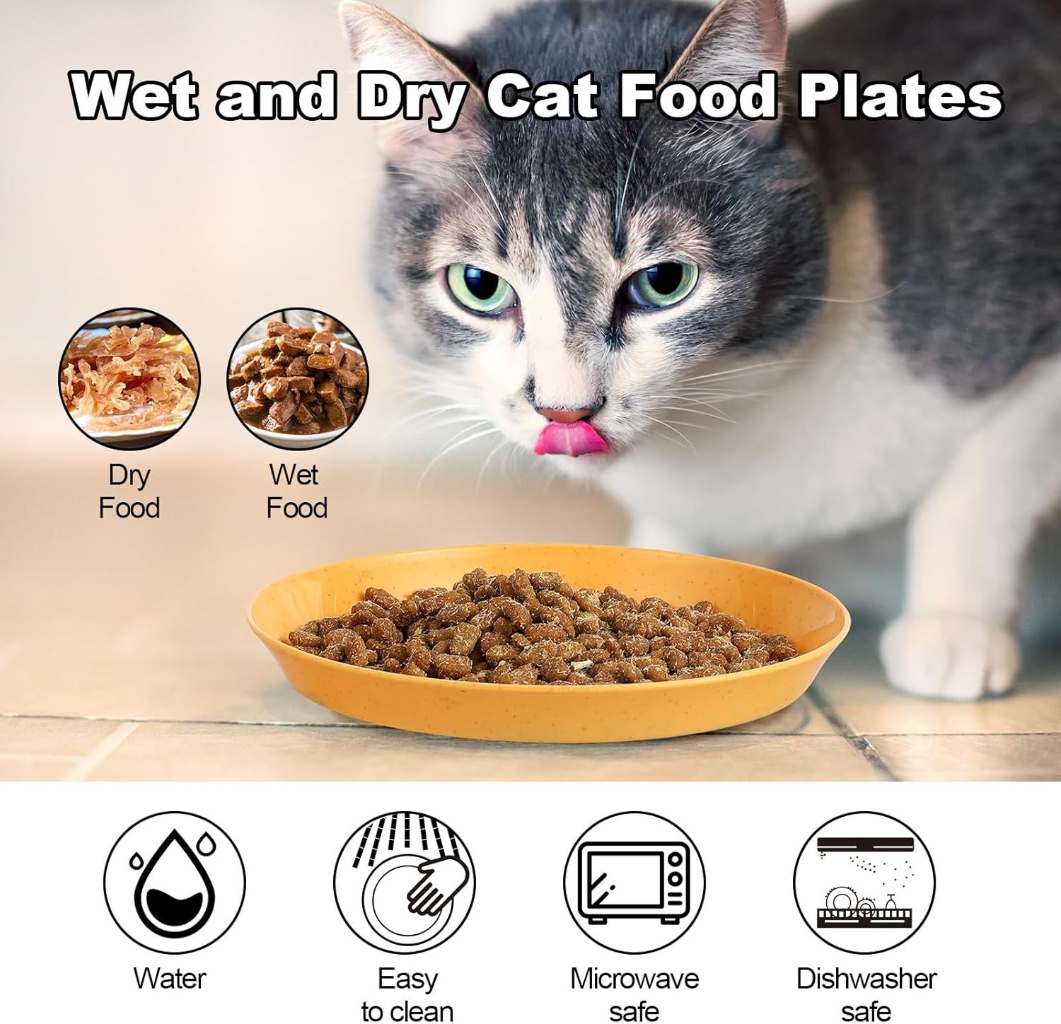 【Multifunction】The cat food plate is suitable for wet food,dry food,milk,cat snacks,etc.It can be used not only for small cats or short-legged cats, but also for puppies,rabbits,etc. It can also be used as a salad plate,candy plate,fruit plate,etc.
