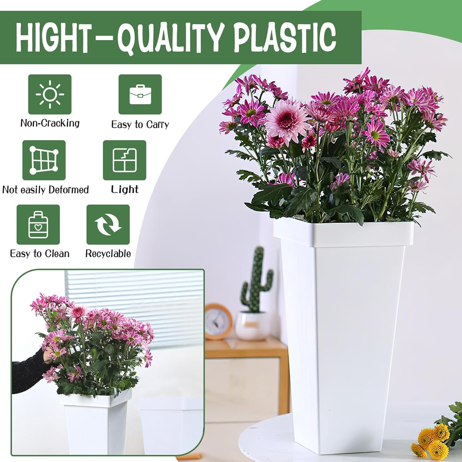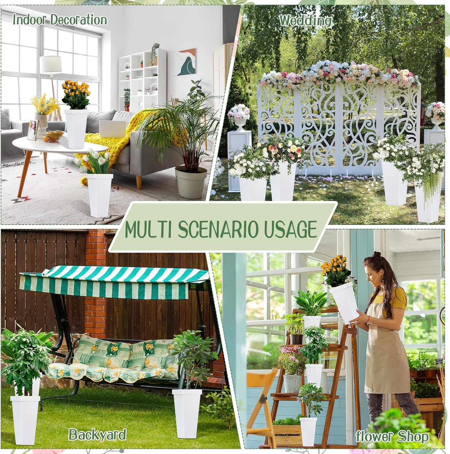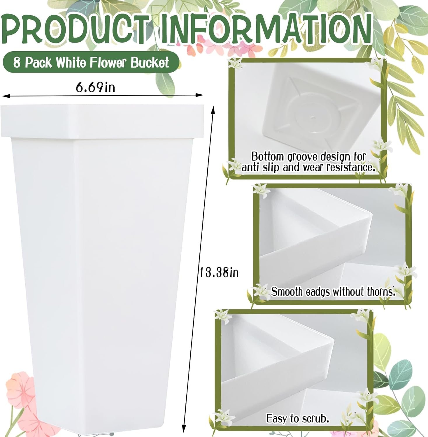 Package Contents: You will 8 plastic flower buckets with an elegant rectangular shape and white finish. They are perfect for a diverse range of decoration needs. Their simple yet stylish appearance also makes them an ideal housewarming gift.