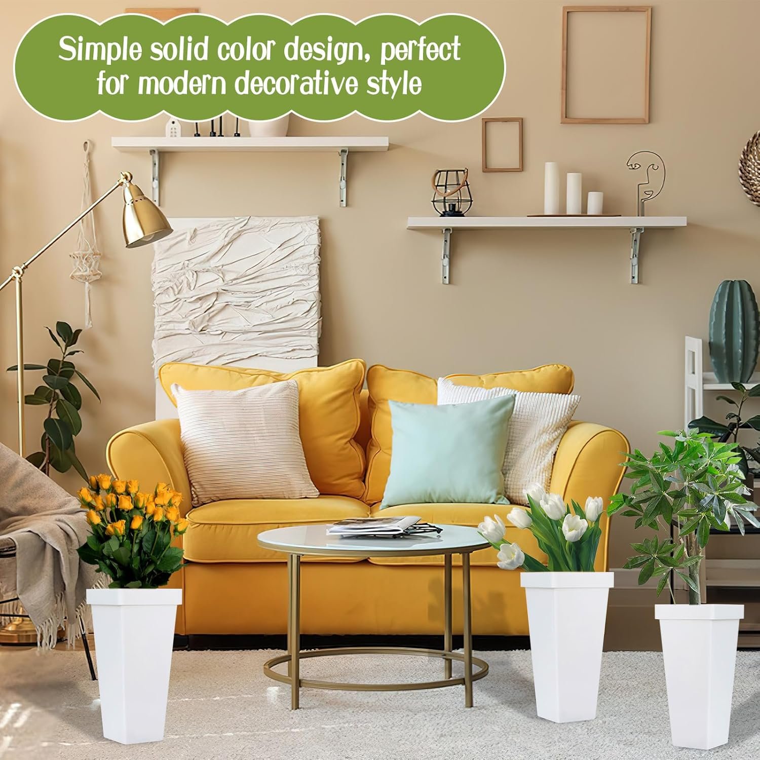 Modern Design: Our plastic vases for centerpieces feature a simple solid color design that is both trendy and classic; This combination makes buckets an ideal accessory for flower arrangement on mantle, coffee table, dining room, kitchen, bathroom, office, hotel, restaurant.