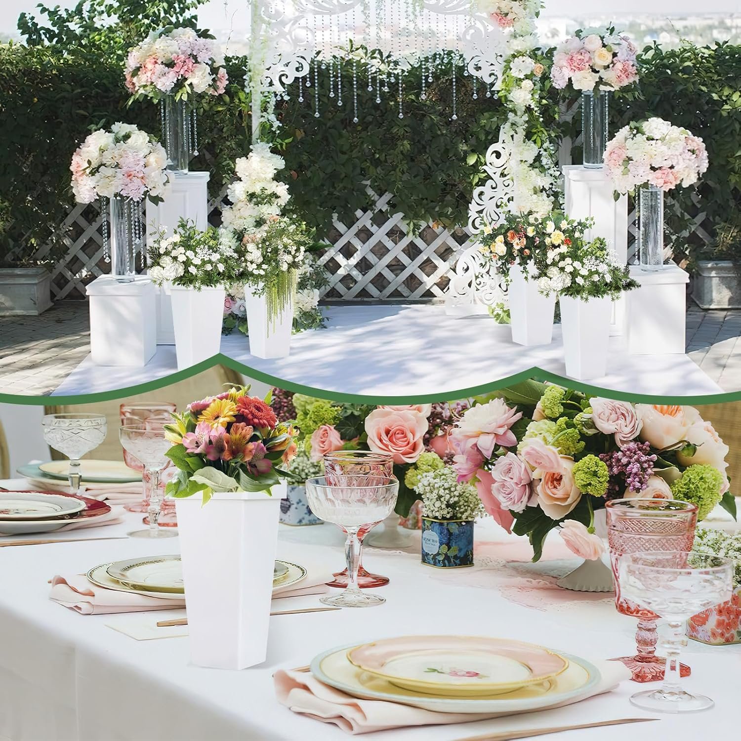 Quality Material: The square vases for centerpieces is constructed of lightweight plastic, resilient, crack-proof, won’t leak or rust, easy to clean, ideal for holding both fresh and dry flowers.
