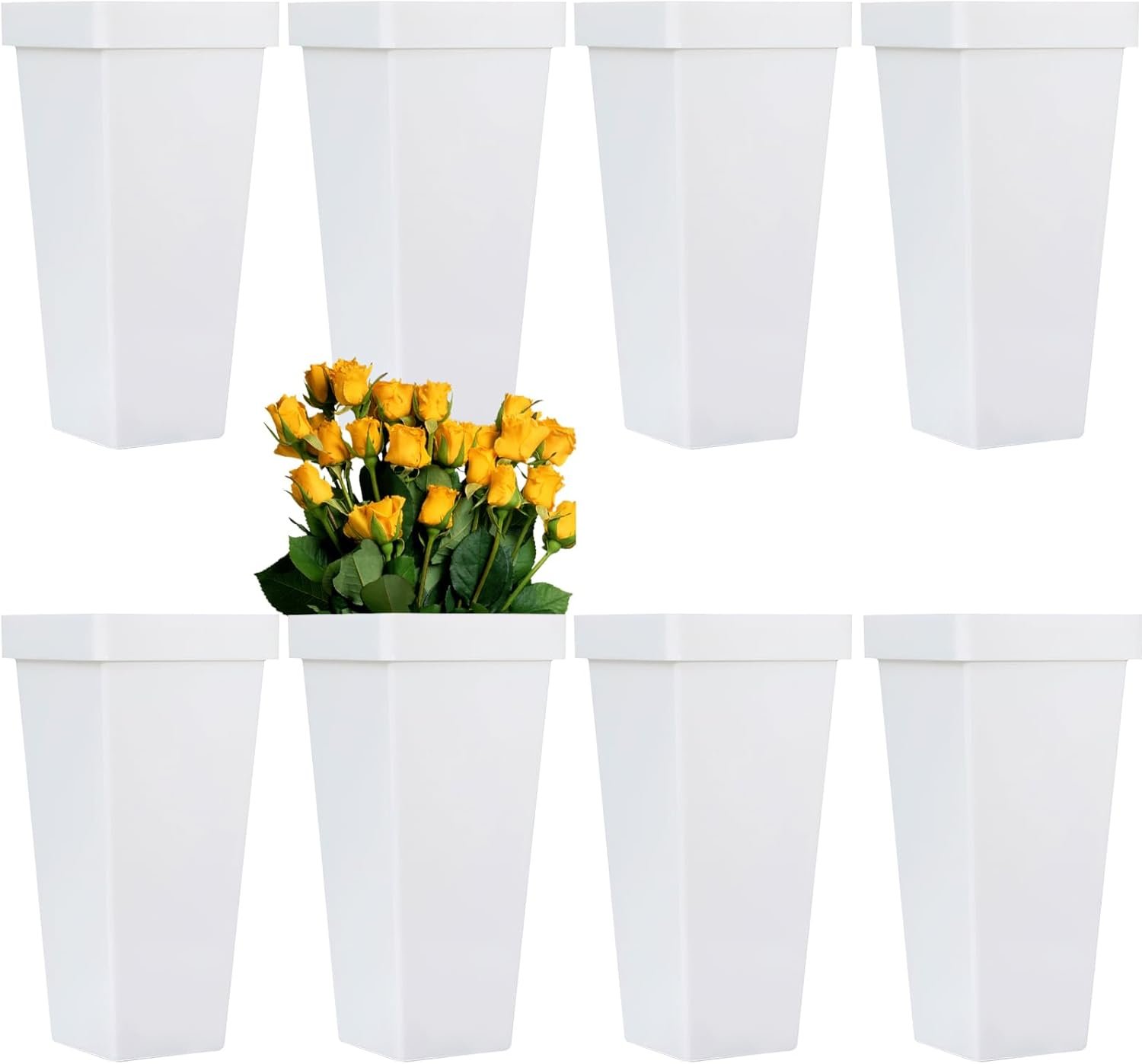 8 Pcs Flower Buckets for Cut Flowers, 13.4 Inch Plastic Floral Buckets Modern Square Vases for Centerpieces Display Decorative Plastic Vases for Home Office Wedding Decor, White