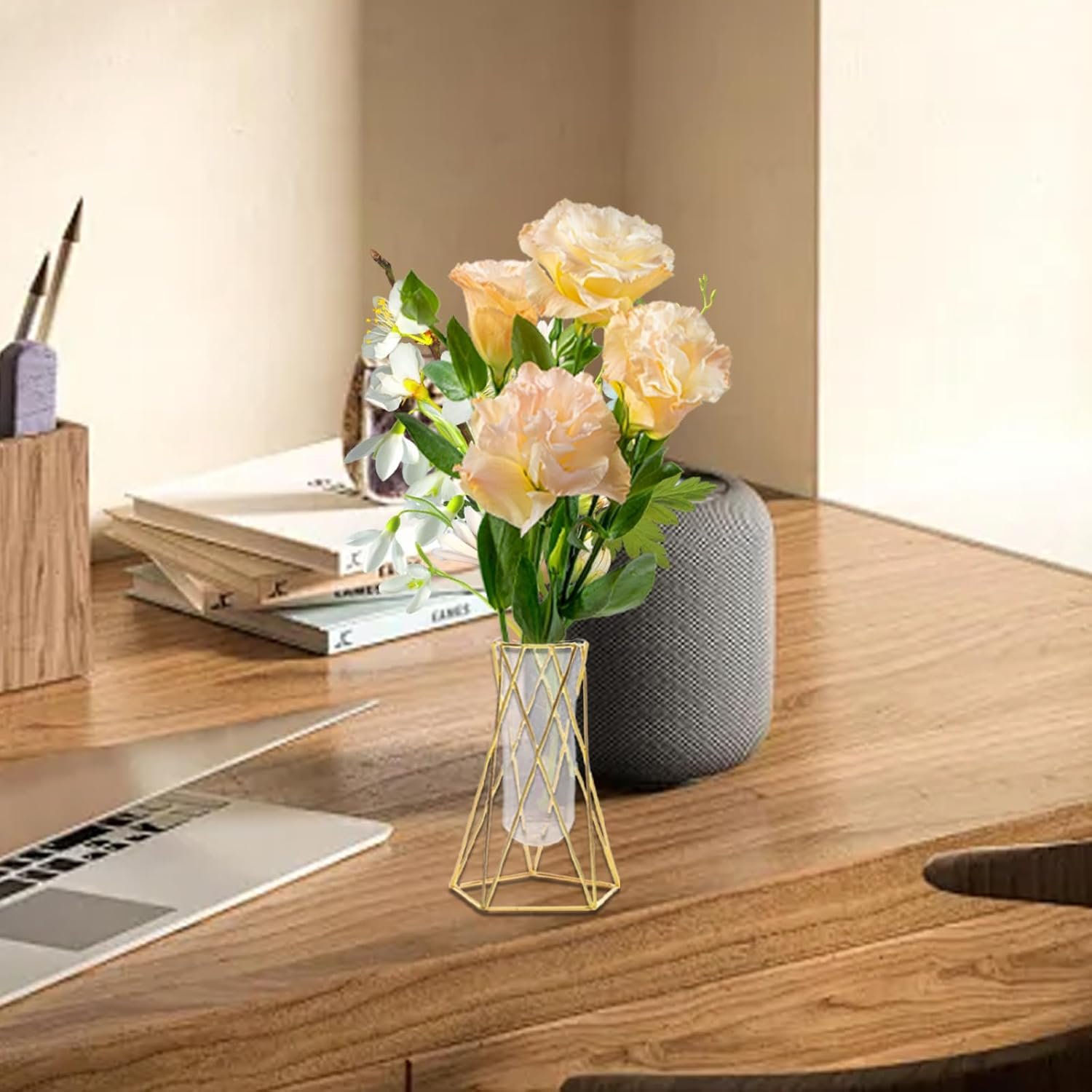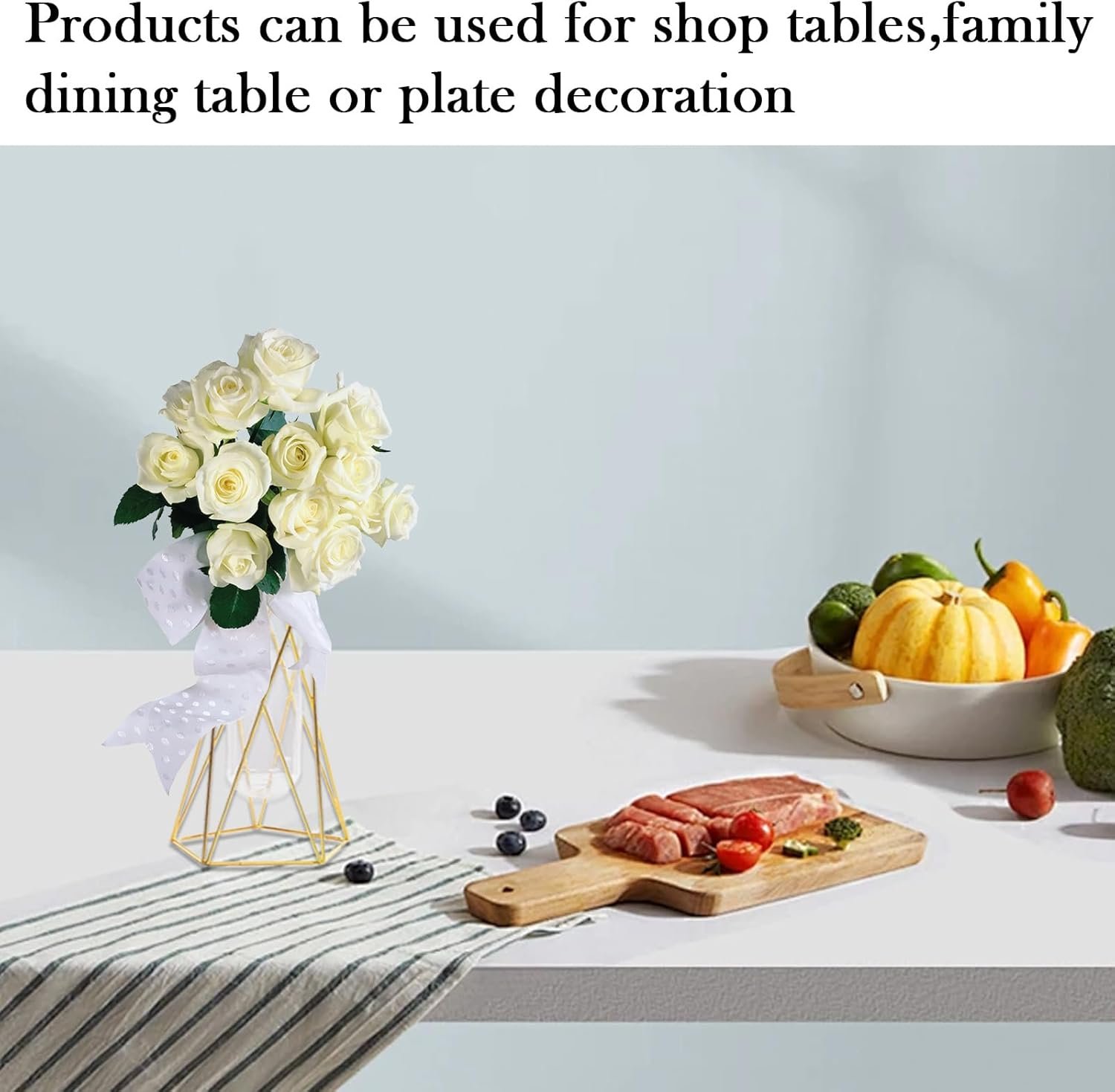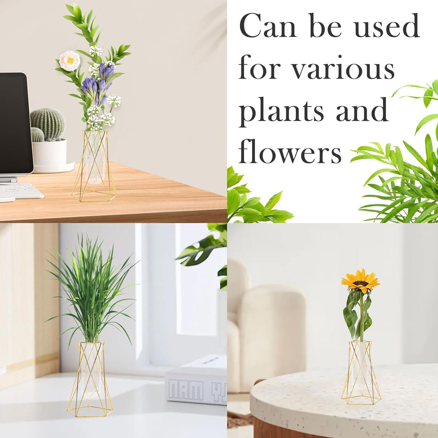 【Easy to Install】These gold geometric vases for flower can put the glass tube vase into the metal stand through the top opening, you can add water and plants, flower vase glass test tube adopts lightweight and detachable design, easy to take out and put in, easy to clean, just rinse them with water and let them dry.