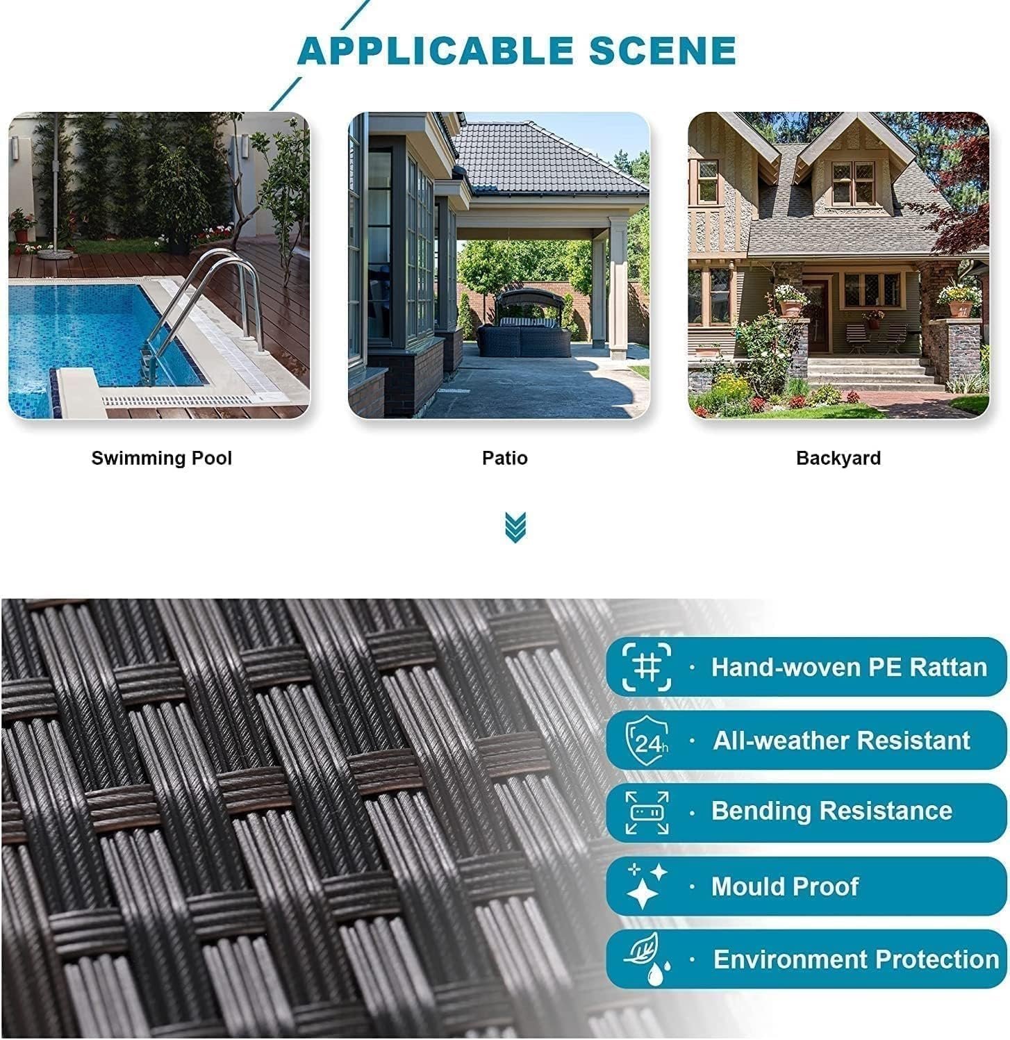 for Backyard, Deck, or Garden Lounge: for versatile outdoor living, this 8 piece patio conversation set transforms your porch, deck, or backyard into a welcoming lounge zone. The combination of rattan sofa and fire pit table adds warmth and comfort to outdoor space.
